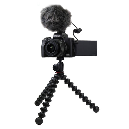 Created for aspiring content producers and filmmakers, the Canon EOS M50 Mark II Mirrorless Camera with 15-45mm Lens Content Creator Kit bundles the sleek and capable mirrorless camera body and EF-M 15-45mm f/3.5-6.3 IS STM standard zoom lens with the Joby Gorillapod for steadier shooting and the Rode Compact VideoMicro Microphone for improved audio quality.