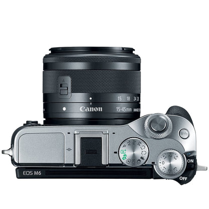 The EOS M6 is an interchangeable-lens camera that puts advanced technologies like Dual Pixel CMOS AF with phase-detection in a compact and lightweight size. Ready at hand to help capture photos and videos the instant the moment happens, it focuses quickly and precisely to help ensure you catch the shot you want. The 24.2 Megapixel CMOS (APS-C) Sensor helps ensure your results are clear, incredibly detailed and vibrantly colorful. Once you’ve captured your most precious memories, you can easily share them with friends, family and the world through built-in wireless connectivity including Wi-Fi1, NFC2 and Bluetooth3. Advanced technology and stunning image quality combine inside the stylish, highly portable EOS M6.