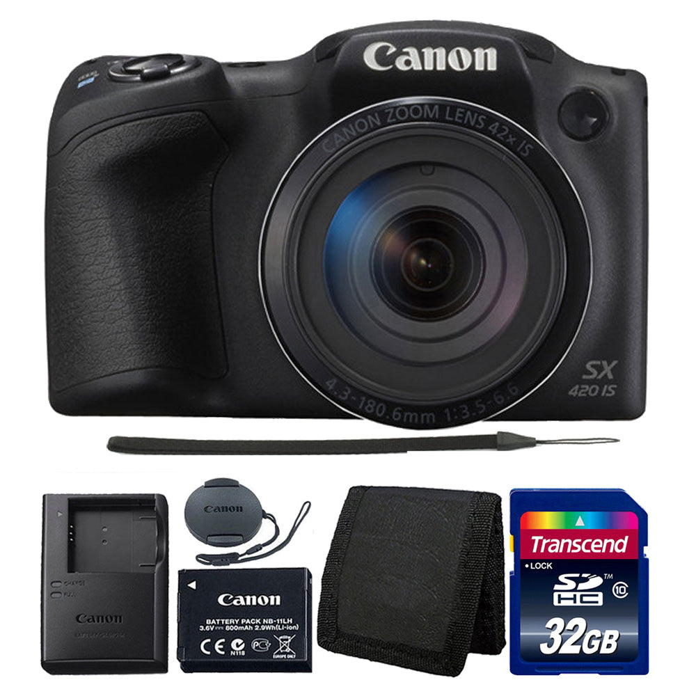 Blending a truly long-reaching zoom with apt imaging performance, the black Canon PowerShot SX420 IS Digital Camera is further characterized by its versatility and ergonomic handling. The 20.0MP 1/2.3" CCD image sensor pairs with the DIGIC 4+ image processor to enable high-resolution stills shooting and HD 720p video recording at 25 fps, while the expansive 42x optical zoom lens ranges from wide-angle to super telephoto perspectives to suit working in a variety of environments. An Intelligent IS image stabilization system benefits the lens' reach, as well as when working in difficult lighting conditions, by minimizing the appearance of camera shake for sharper imagery. For composing imagery or reviewing your photos and movies, a rear 3.0" 230k-dot LCD is available and built-in Wi-Fi with NFC further permits wireless sharing of imagery directly to your smartphone or tablet.