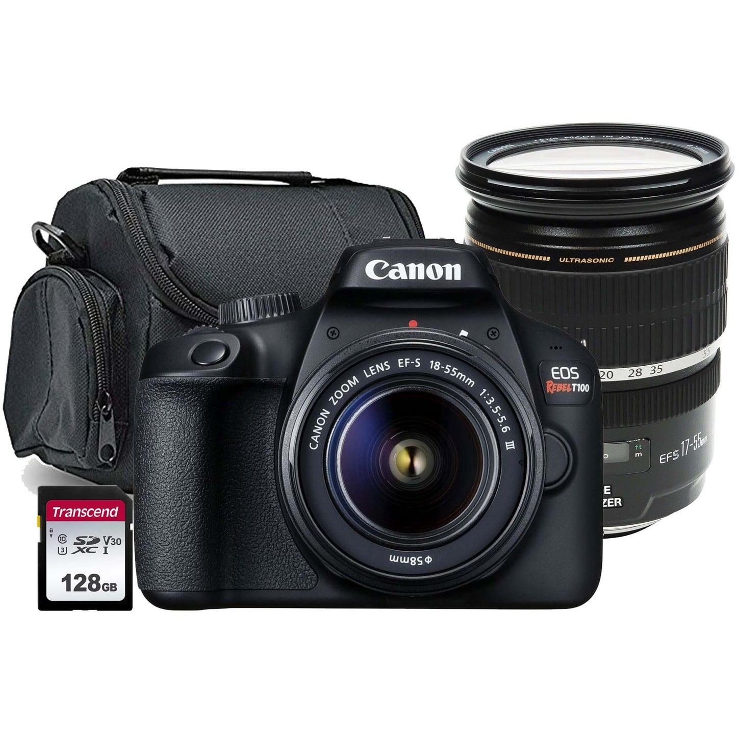 CANON EOS REBEL T100 WITH EF-S 18-55MM F/3.5-5.6 III LENS + CANON EF-S 17-55MM F/2.8 IS USM LENS + TANSCEND SDXC 128GB UHS -I U3 300S V30 CLASS 10 95MB/S + FULL SIZE DSLR GADGET BAG