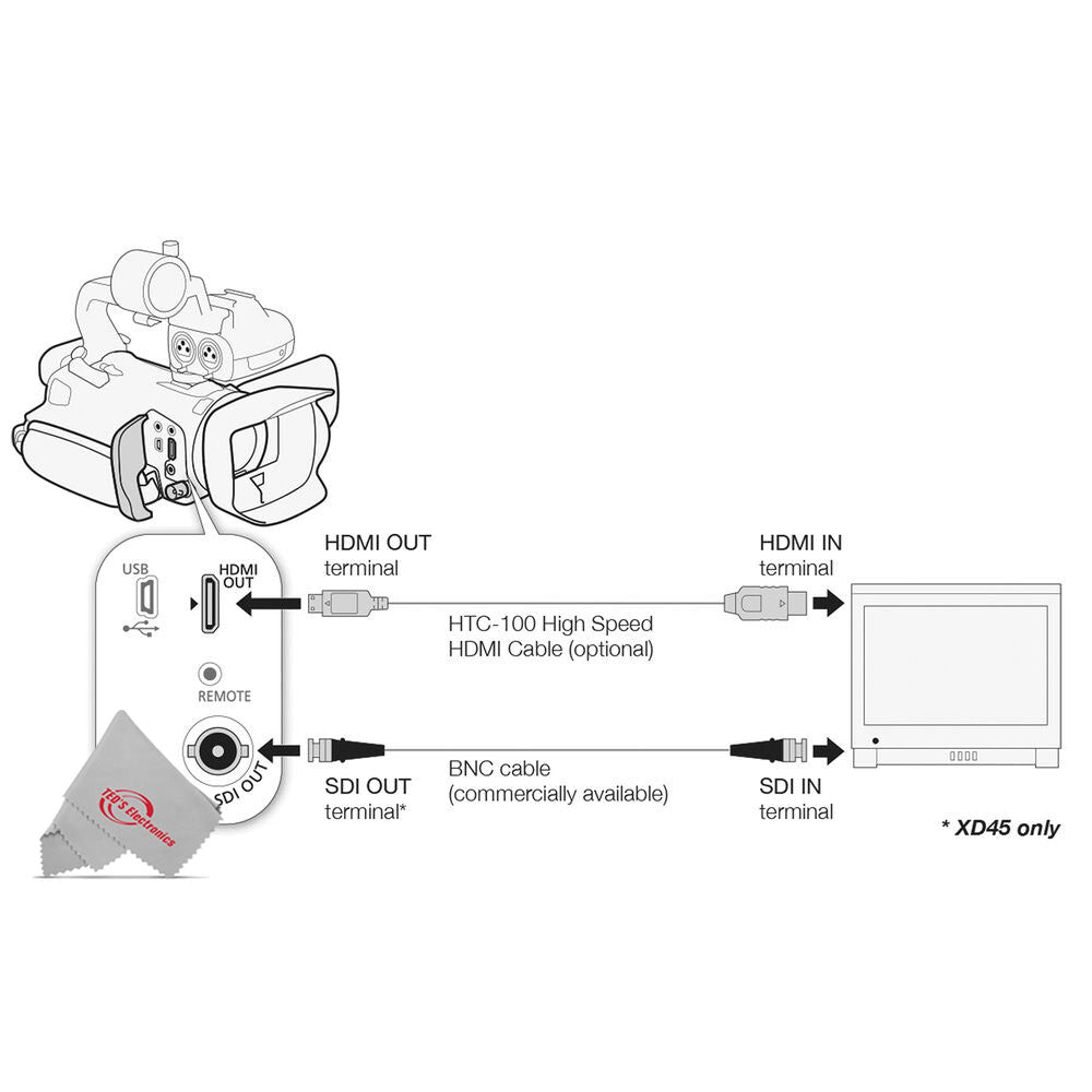 The camera records UHD 4K30 and Full HD 1080p60 captured to dual SD card slots, and outputs to a mini-HDMI port. The dual SD card slots allow for automatic switching from one card to another, as well as simultaneous recording to both. The camera can output up to 1920 x 1080p 10-bit 4:2:2 video at 59.94 fps via its mini-HDMI output. On the audio side, the XA40 features up to four channels of LPCM audio with manual/automatic recording levels, two XLR inputs with phantom power, and a 3.5mm stereo mini input. It features a built-in stereo microphone as well as a headphone jack.