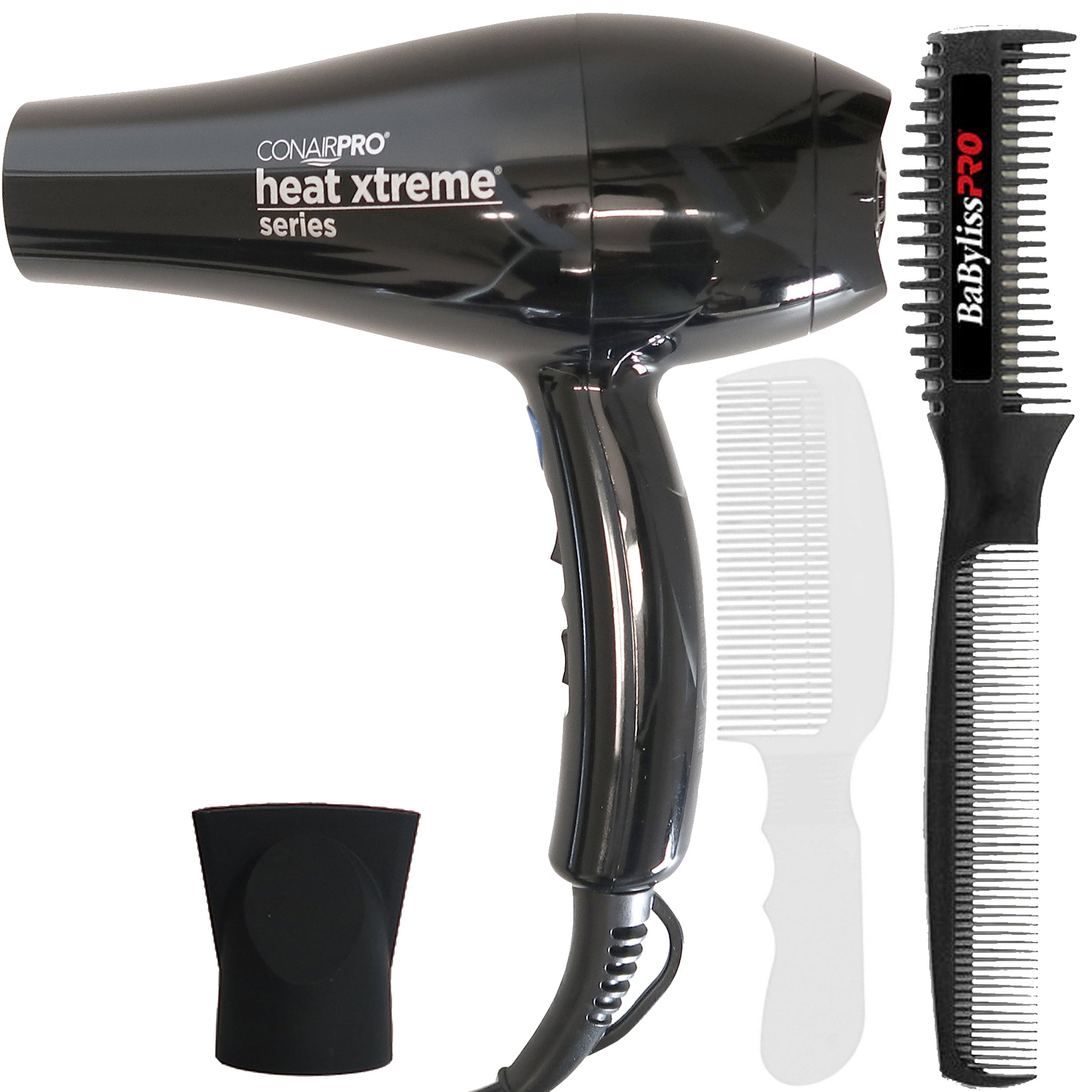 CONAIR PROFESSIONAL HEAT XTREME PROFESSIONAL HAIR DRYER, 1875 WATTS, BLACK + BABYLISS PRO PROFESSIONAL TEXTURIZING COMB #BCUTCOMB + WAHL FLAT TOP COMB WHITE #3329-100