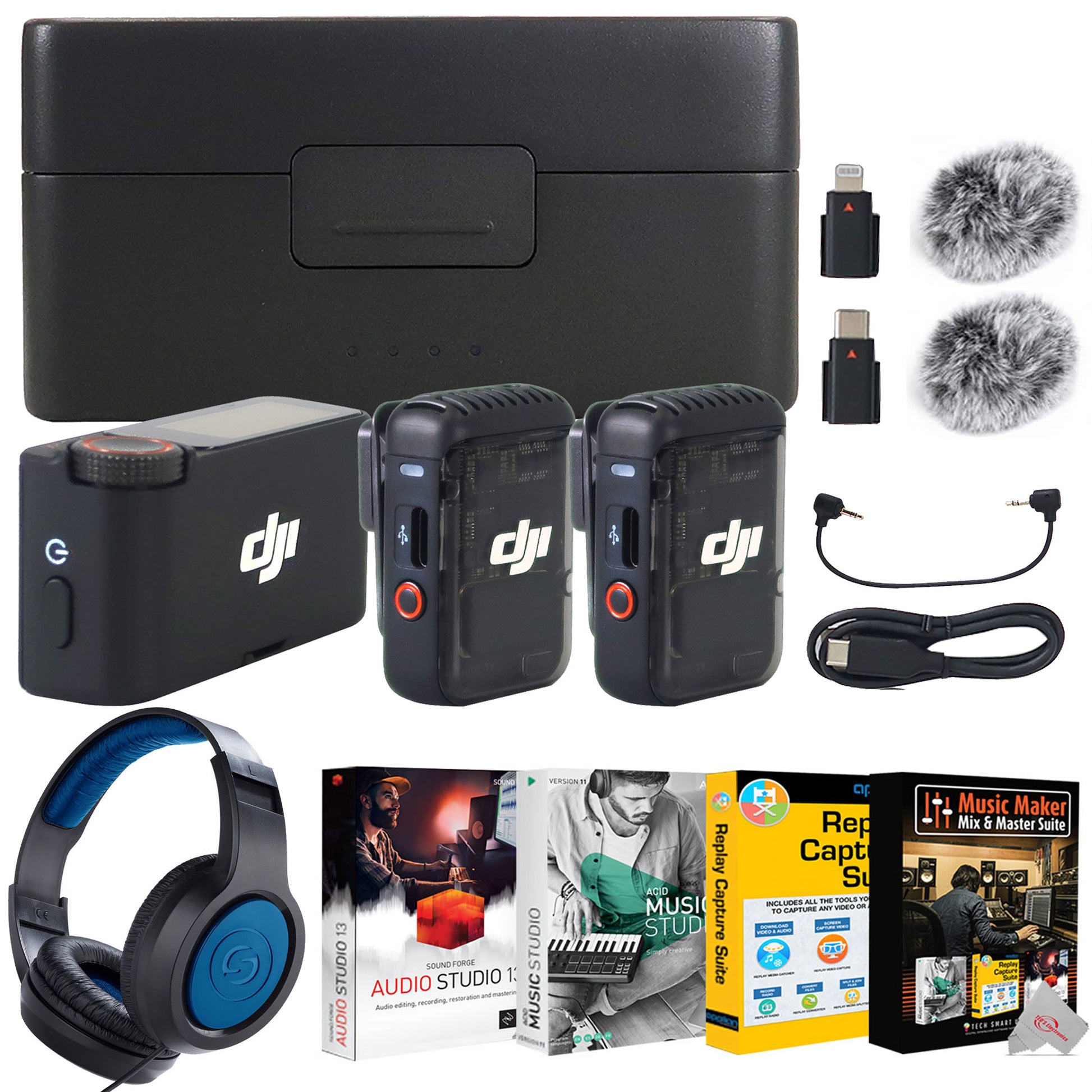 DJI MIC 2 2-PERSON COMPACT DIGITAL WIRELESS MICROPHONE SYSTEM - RECORDER FOR CAMERA & SMARTPHONE + SAMSON SR350 OVER-EAR STEREO HEADPHONES (SPECIAL EDITION BLUE) + MUSIC MAKER MIX AND MASTER SUITE SOFTWARE