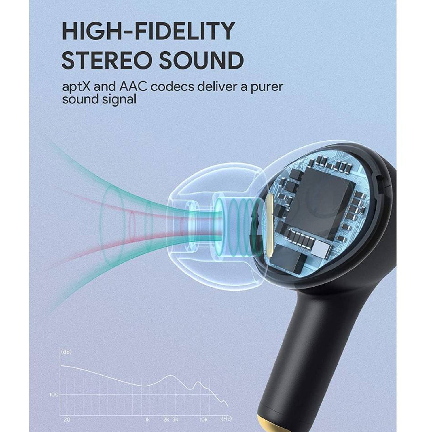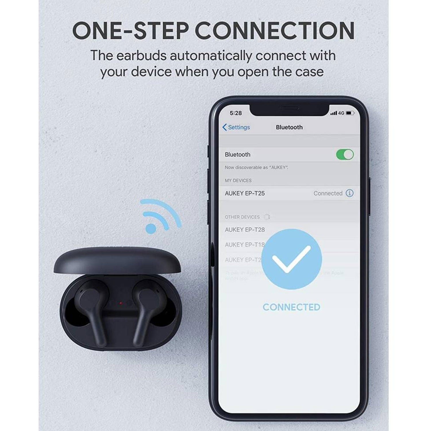 AUKEY True Wireless Earbuds Hi-Fi Stereo Bluetooth 5.0 Headphones 25-Hour Playtime IPX5 Waterproof Earphones with USB-C Quick Charging Case for iPhone and Android Black EP-T25