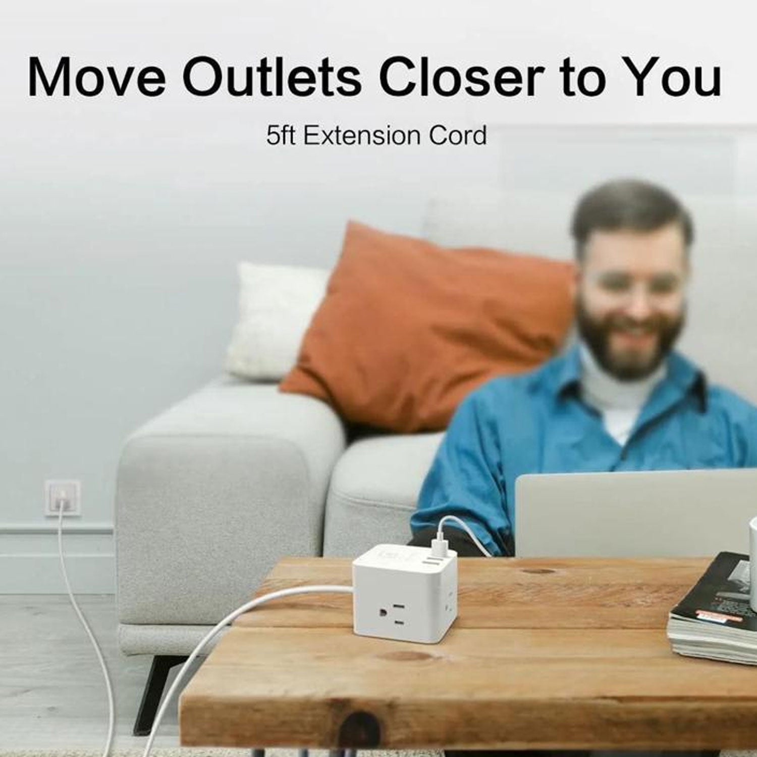BULL Power Strip - 3 USB Ports, 3 AC Outlets and 5ft Flexible Extension Cord