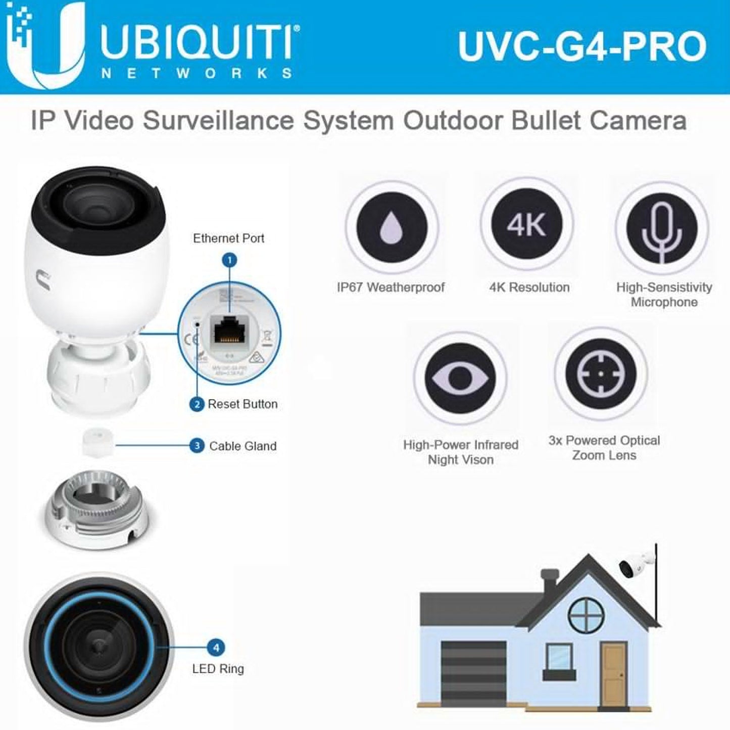 Ubiquiti Networks UniFi UVC-G4-PRO Ultra HD 4K Resolution Outdoor PoE Network Bullet Camera with 3x Optical Zoom