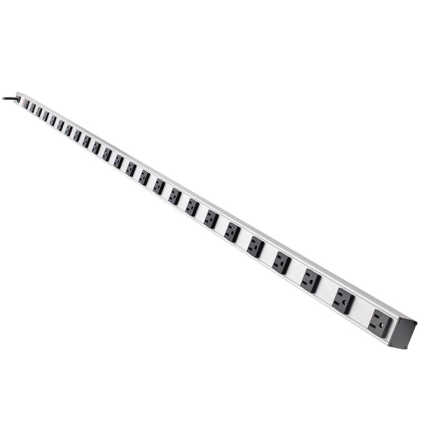 Never search for an open outlet again! With Tripp Lite's PS7224 power strip, you'll have outlets where you need them, when you need them. The PS7224 provides 24 standard NEMA 5-15 outlets in a rugged, all-metal housing guaranteed to last for life. The included hardware allows for both vertical and horizontal mounting, making the PS7224 ideal for a variety of uses including office, rackmount, workbench, industrial and telecom applications. A lighted and covered On/Off switch helps prevent accidental shut-offs, while a 15-amp circuit breaker guards against dangerous circuit overloads. With vertical or horizontal installation, a rugged housing and plenty of outlets, Tripp Lite's PS7224 is ideal for point-of-sale and retail display applications. It provides reliable, consistent power service for multiple devices. Tripp Lite's power outlet strips can also be used in home office, workbench and rack enclosure applications. The included mounting hardware allows the PS7224 to be installed wherever reliable, multi-outlet power distribution is required. Featuring 24 outlets compatible with all standard electrical equipment, the PS7224 is an ideal solution for applications or locations that require power to many devices simultaneously. The 72-in. housing spaces the outlets 2.795 inches apart from center to center, allowing enough room for most AC adapters and transformers. Install the PS7224 far away from its power source and provide power distribution to previously un-powered areas with the extra long, 15-ft. power cord. The PS7224 can be mounted in a different area, or a completely different room from where it draws AC power, putting you in control of getting reliable power service where you need it most. The lighted On/Off switch features a translucent cover that eliminates accidental shut offs while still allowing you to see whether the PS7224 is operational with a glance. A built-in, 15-amp circuit breaker prevents dangerous circuit overloads that could damage equipment. The breaker immediately shuts off AC input to the PS7224 when it detects that the equipment load is drawing too much power. The PS7224’s rugged, all-metal housing is durably constructed making it a great solution for industrial, retail display and workbench applications.