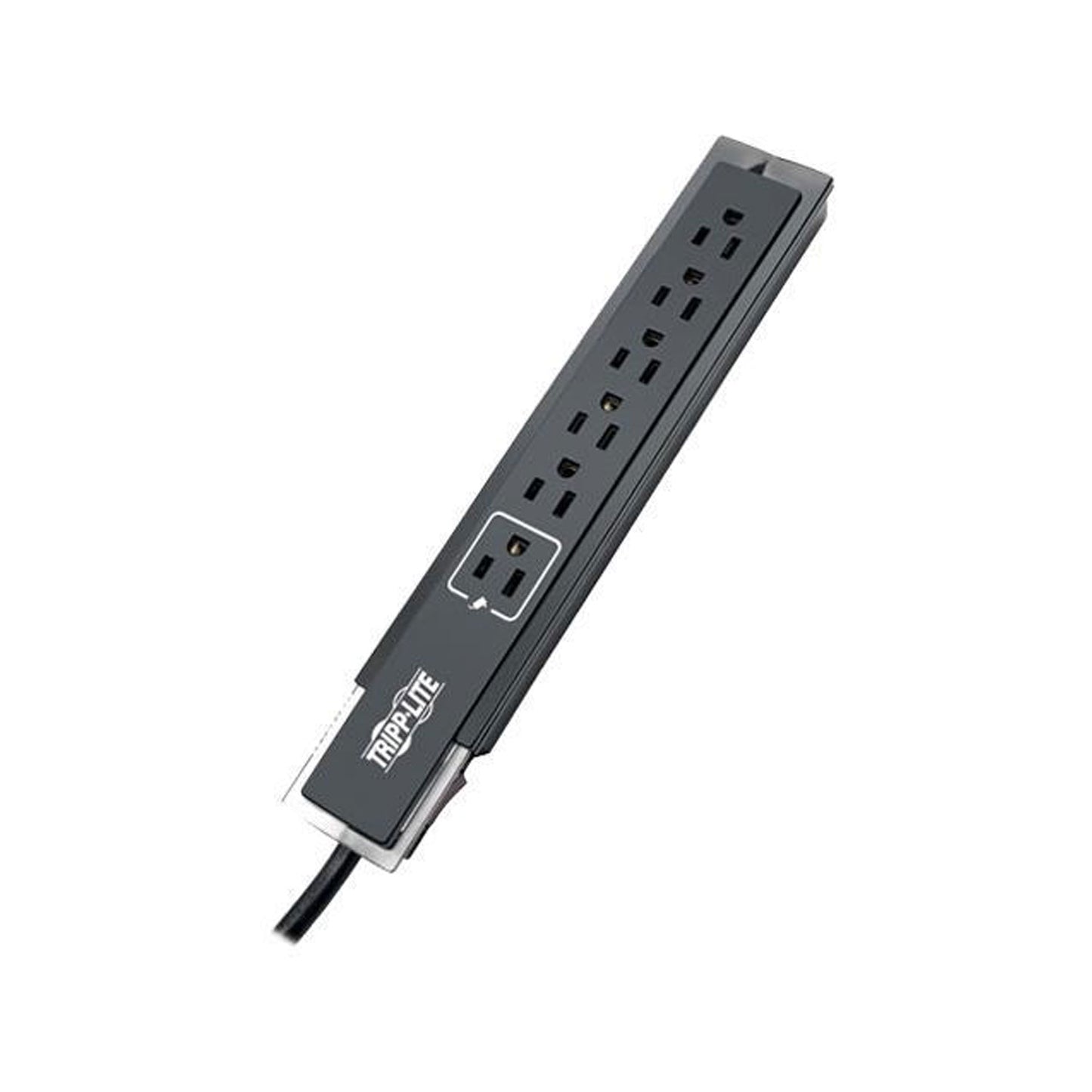 6 Outlet Surge Protector with Tel/DSL Protection, 6-ft. Cord and Right-Angle Plug Perfect for your home or office, Tripp Lite’s Protect it!® TLP606SSTELB will safeguard your workstation or home electronics against surges, spikes and line noise. It’s ideal for protecting your computer, printer, scanner, external hard drive, telecommunication devices and other sensitive electronics. The TLP606SSTELB includes 6 NEMA 5-15R outlets, plus built-in RJ11 jacks to protect a phone, DSL, modem or fax line. Its black plastic housing blends well with modern technology components.