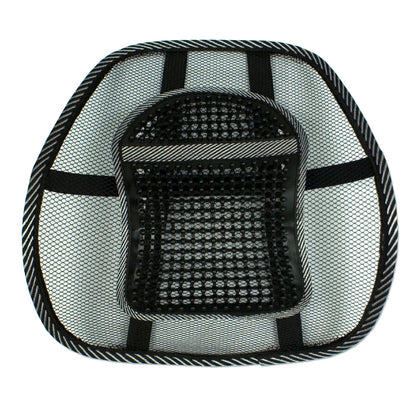 This ergonomic lumbar back support is perfect for car-, home-, or office use. Simply attach it to a seat with the elastic strap. It will relieve your back stress, and improve your posture and spinal stability. The large massage pad helps reduce back tension. It features mesh fabric with a lightweight yet durable steel frame.
