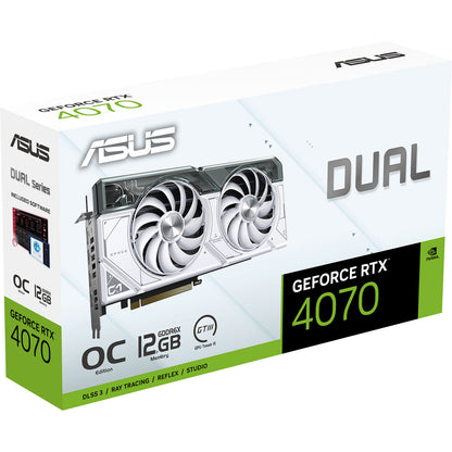 ASUS Dual GeForce RTX 4070 White OC Edition 12GB GDDR6X (PCIe 4.0, 12GB GDDR6X, DLSS 3, HDMI 2.1, DisplayPort 1.4a, 2.56-slot design, Axial-tech fan design, 0dB technology) DUAL-RTX4070-O12G-WHITE