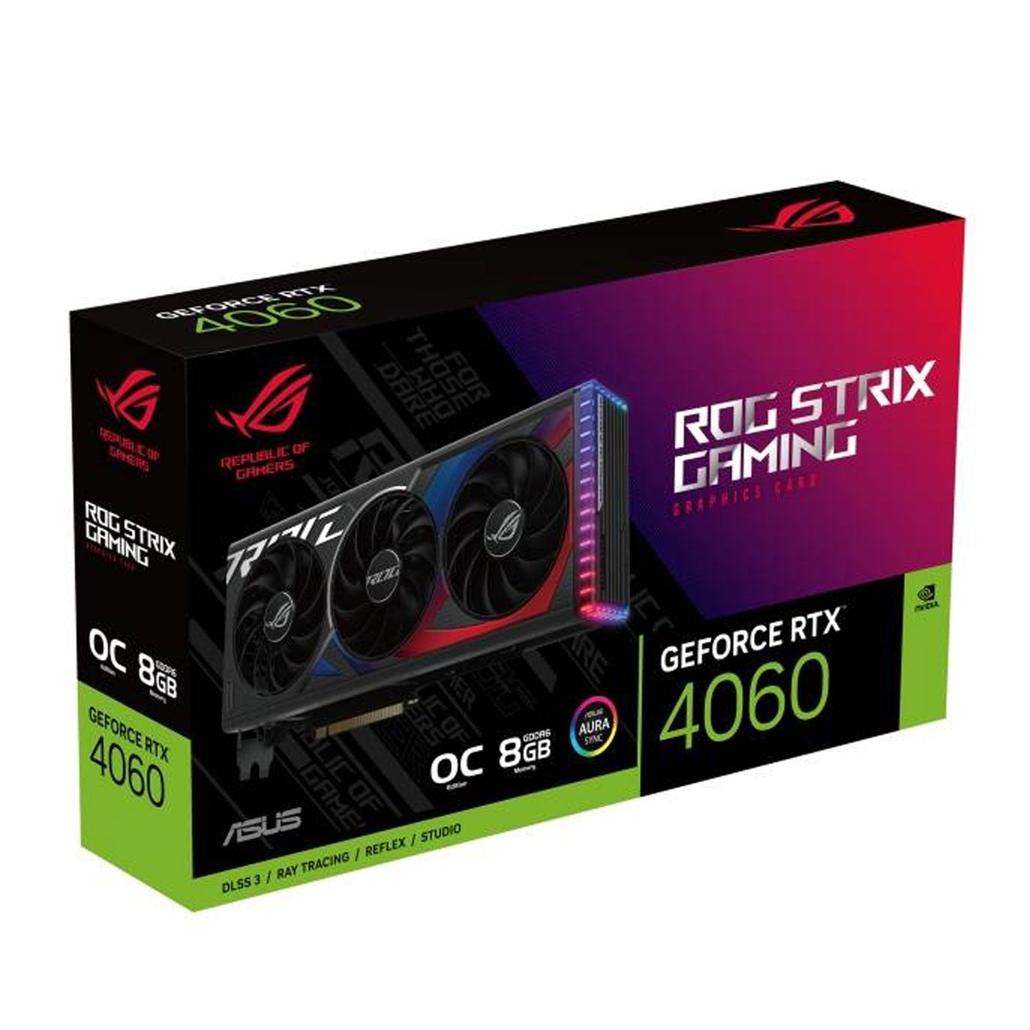ASUS ROG Strix GeForce RTX 4060 OC Edition Gaming Graphics Card (PCIe 4.0, 8GB GDDR6, DLSS 3, HDMI 2.1a, DisplayPort 1.4a, Axial-tech fan design, Aura Sync) ROG-STRIX-RTX4060-O8G-GAMING