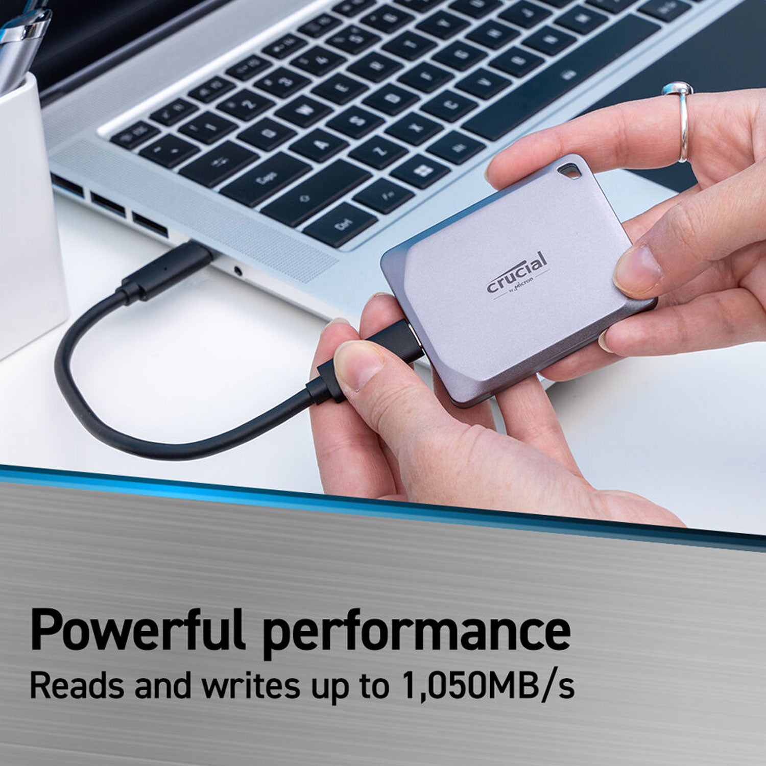 Crucial X9 Pro 1TB Portable SSD - Up to 1050MB/s read and write - water and dust resistant, PC and Mac - USB 3.2 External Solid State Drive - CT1000X9PROSSD9