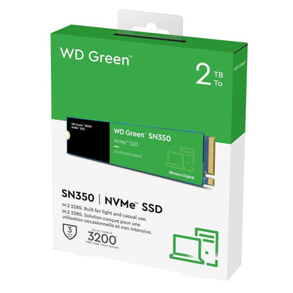 The WD Green™ SN350 NVMe™ SSD can revitalize your old computer for daily use. Whether you’re in class, shopping, chatting or surfing, this drive can work up to four times faster than SATA drives. Because they have no moving parts, solid state hard drives offer a shock-resistant design to help protect your important data against accidental bumps and drops. The slim M.2 2280 form factor allows for a quick and easy upgrade for any computer with an NVMe slot. Plus, with the downloadable Western Digital® SSD Dashboard you can also monitor the health of your drive for added peace of mind. Experience fast performance with cost-effective NVMe ™ technology that outperforms traditional SATA drives. Because there are no moving parts, solid-state drives help to protect your data against day-to-day bumps or drops,