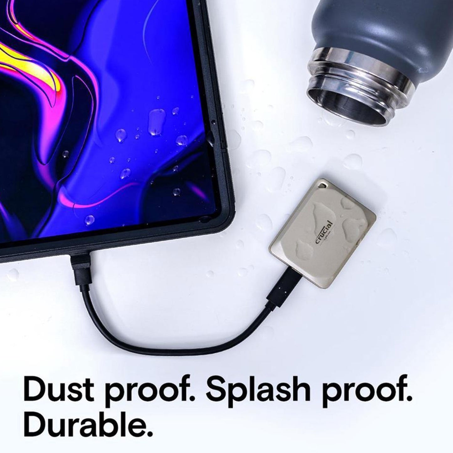 Designed for Mac and optimized to work with Apple devices right out of the box, the Crucial X9 Pro for Mac helps you supercharge your creativity. With space to store thousands of photos, files, and videos and the speed to edit and retouch your media quickly, the Crucial X9 Pro for Mac gives you the capacity to tackle even taxing workloads along with durability and style in the studio, in the field, or wherever you roam. The X9 Pro for Mac is optimized for modern Apple devices like Mac, iPad and iPhone 15 Pro/Pro Max and offers out-of-the-box plug-and-play compatibility without the need to reformat for Time Machine8 backups. Create at the speed of ideas with reads and writes up to 1,050MB/s. Powerful enough for editing directly from the drive, the Crucial X9 Pro for Mac sustains high performance writes up to 975MB/s. Whether you’re in the studio, in the field, or traveling, you can help keep your sensitive data safe with Apple’s FileVault volume encryption. With IP55 water and dust resistance and drop-proof durability up to 7.5 feet/2 meters, your X9 Pro for Mac is durable enough to travel anywhere you shoot, work or roam. Innovated by Micron, the Crucial X9 Pro for Mac is sleek and light with anodized aluminum and a rubberized soft-touch base in a mini 65 x 50 mm design that includes a drive activity light in the integrated lanyard hole.