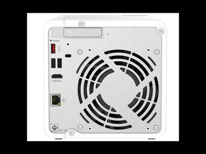 This unit has four SATA III 6 Gb/s drive bays, all of which natively support 3.5" hard drives, as well as 2.5" hard drives and SSDs. Should users need to expand the overall capacity of their TS-462, optional expansion units may be connected. Also featured are two USB-A 3.2 Gen 2 ports and two USB-A 2.0 ports, which allow it to be connected to external peripherals. You can also output video to an external display using the HDMI 2.0 port, which supports resolutions up to 3840 x 2160 at 60 Hz. Network connectivity is achieved via the 2.5 Gigabit Ethernet port.
