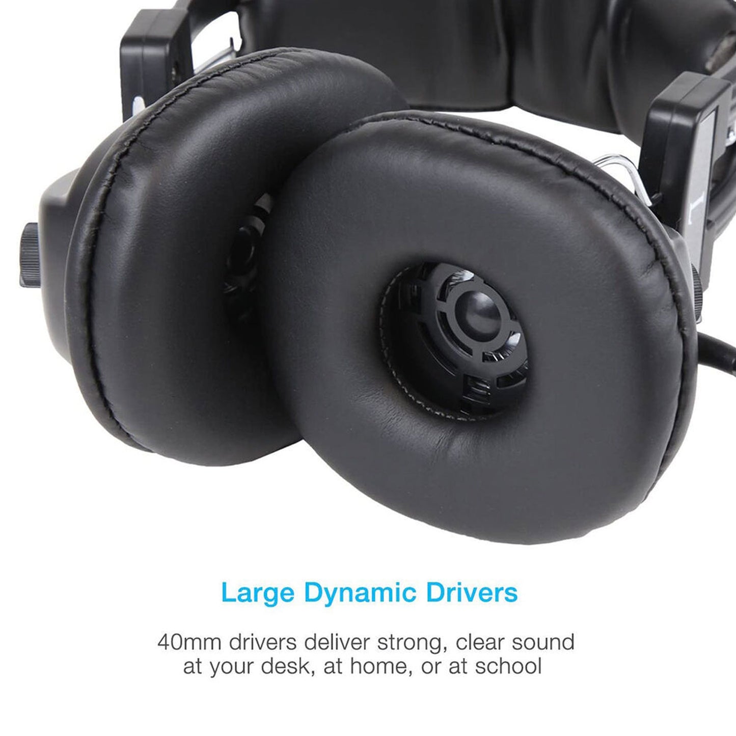 Complete any K-12 classroom with the sturdy ACM-500 stereo headphone. Durable and light weight, the ACM-500 is suitable for any listening arrangement. The stereo/mono toggle is easily accesible and each ear piece has their own individual volume control. Keep the classroom comfortable and the kids at attention.