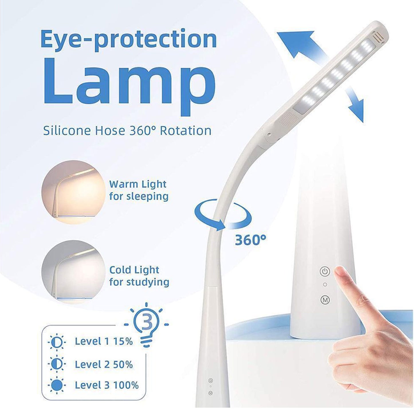 SIMBR LED DESK LAMP FOR KIDS DESK AND CHAIR SET, EYE-CARING TABLE LAMPS, 2 LIGHTING MODES WITH 3 BRIGHTNESS LEVELS, TOUCH CONTROL, 360°SWIVEL WITH CHARGING CORD