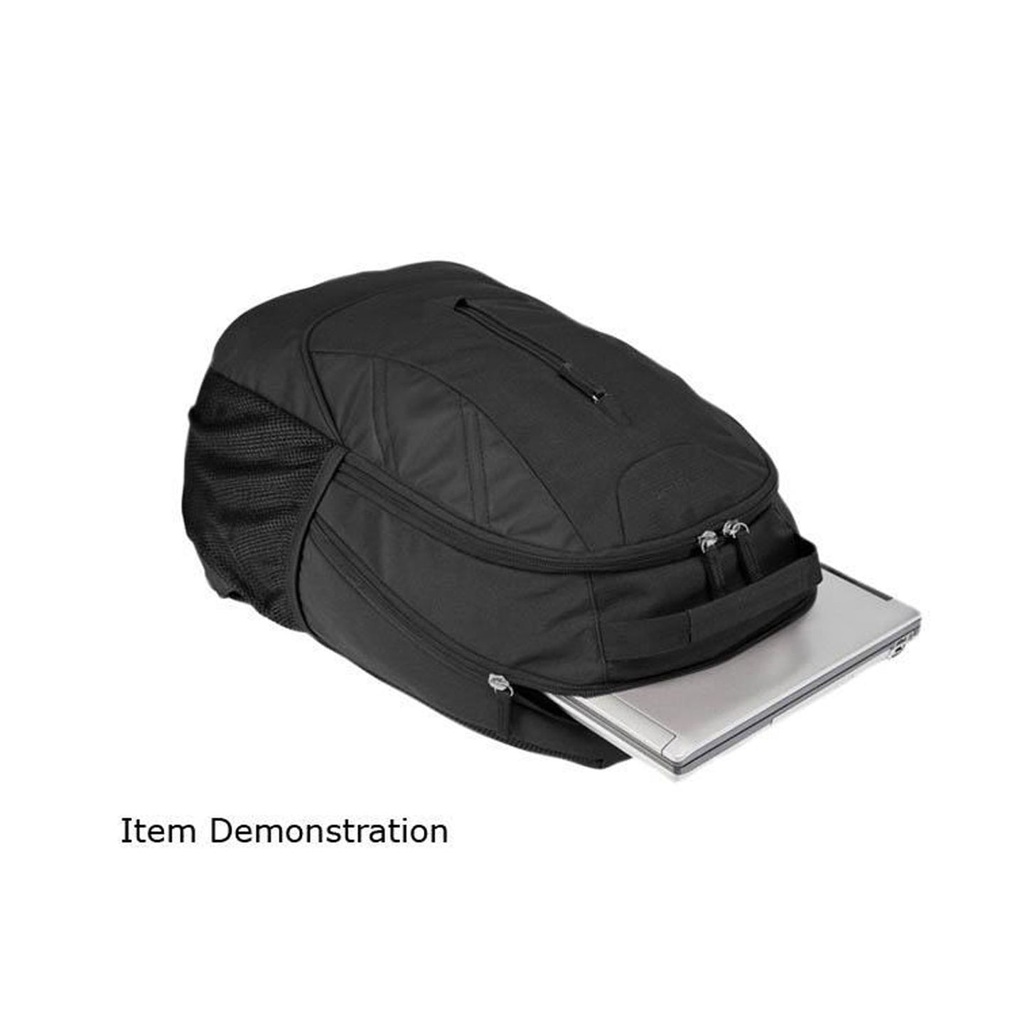 - Zippered stash pocket on front panel; Padded laptop compartment for extra protection; Soft-touch handle; Workstation for storing pens, pencils and small accessories; Jersey mesh water bottle holders; Ergonomic, padded shoulder straps