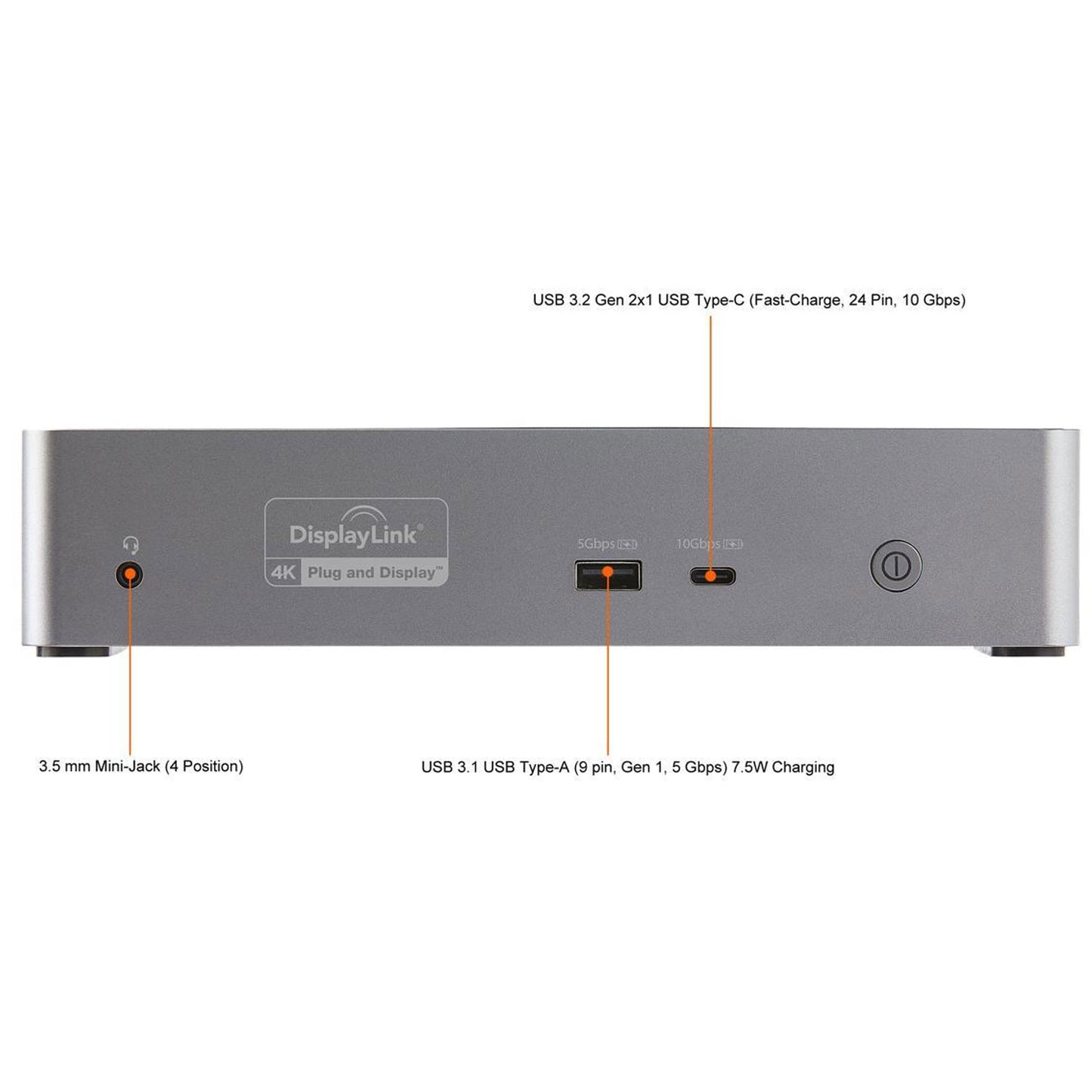 This USB-C Gen 2 10Gbps docking station turns your USB-C or Thunderbolt 3 MacBook Pro, Windows laptop, and Chromebook into a powerful workstation. A USB 3.2 Gen 2 Type-C dock features everything you need, from quad HDMI or DisplayPort video outputs up to 4K 60 Hz to 10Gbps USB-C & USB-A downstream peripheral ports to 100W Power Delivery.