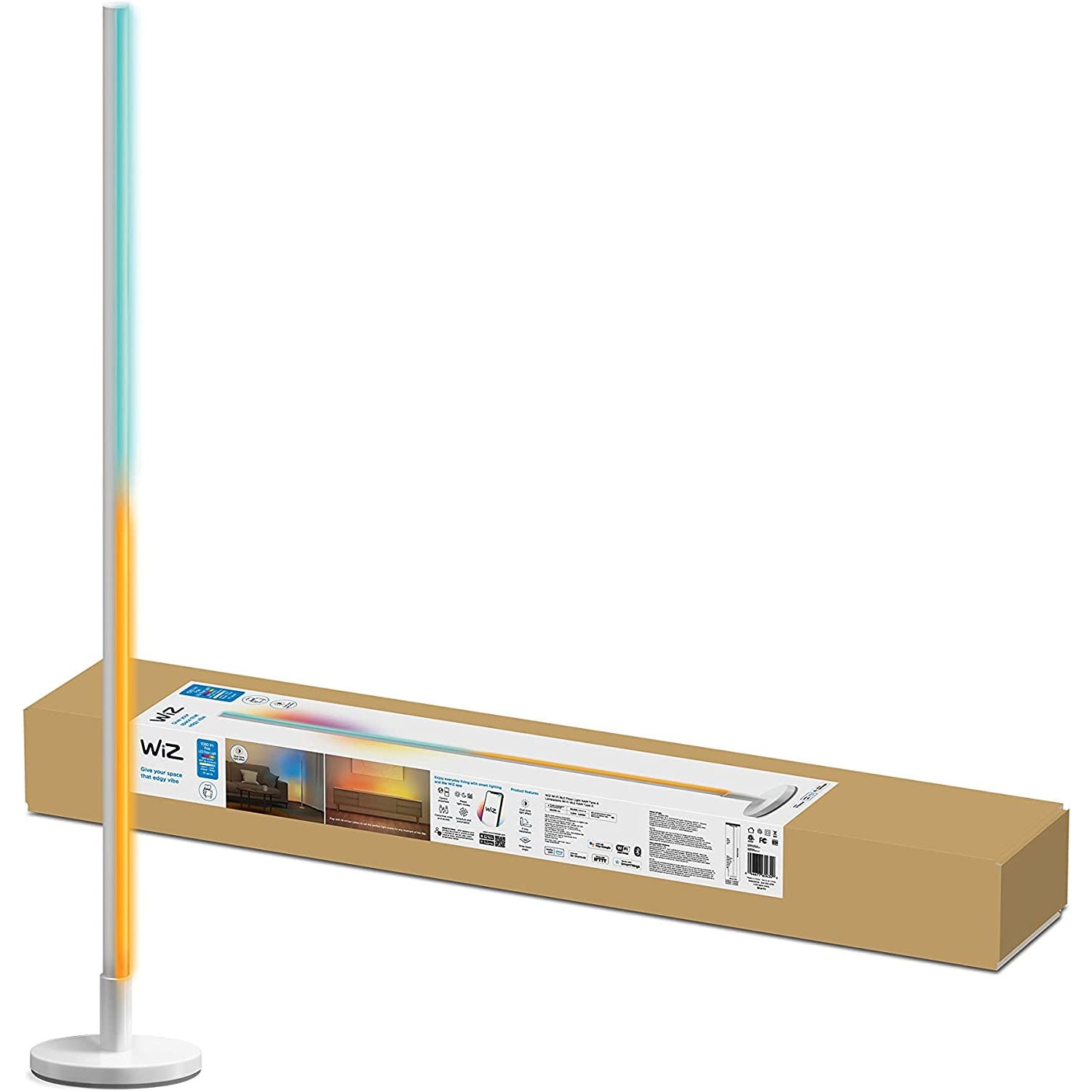 The WiZ Pole floor smart light paints your wall with dual color zones and dynamic light effects. Enjoy colorful, wide-angle wall-wash effects with this floor lamp. Standing tall in the corner, it produces a soft, gradient light. Remove the base to place it horizontally under your couch or behind your TV for an inviting mood to unwind. Create ambience with 16 million colors and warm to cool white light. You can set schedules to turn WiZ lights on and off according to daily or weekly routines, control with your smartphone or your voice and have remote access to your lights even when you're away. WiZ smart lights connect to your existing 2.4Ghz Wi-Fi, no additional hardware is needed.