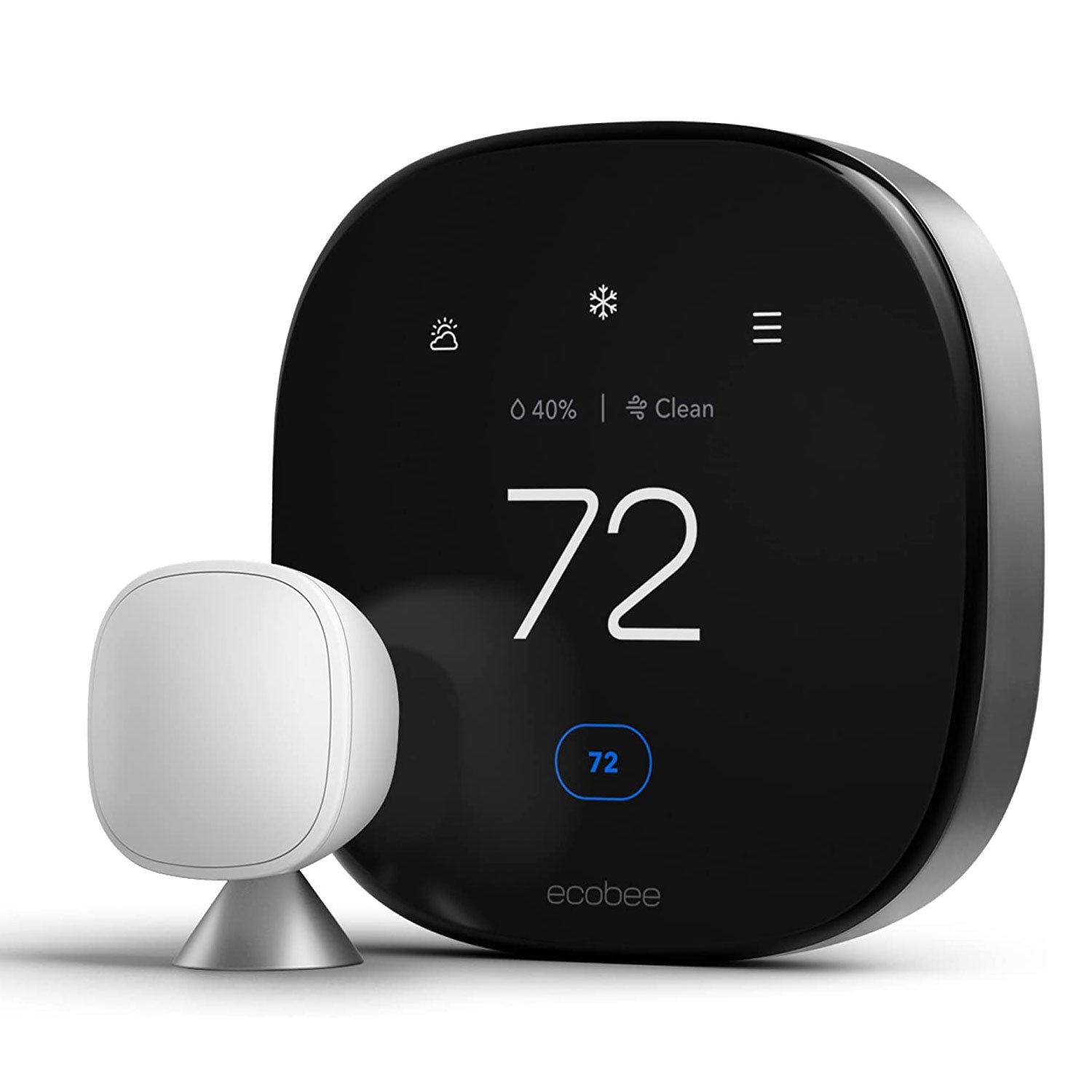 ECOBEE SMART THERMOSAT PREMIUM WITH VOICE CONTROL AND SMART SENSOR, BLACK