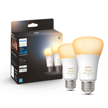PHILIPS HUE 563239 10.5W A19 E26 BLUETOOTH SMART BULB, 2-PACK