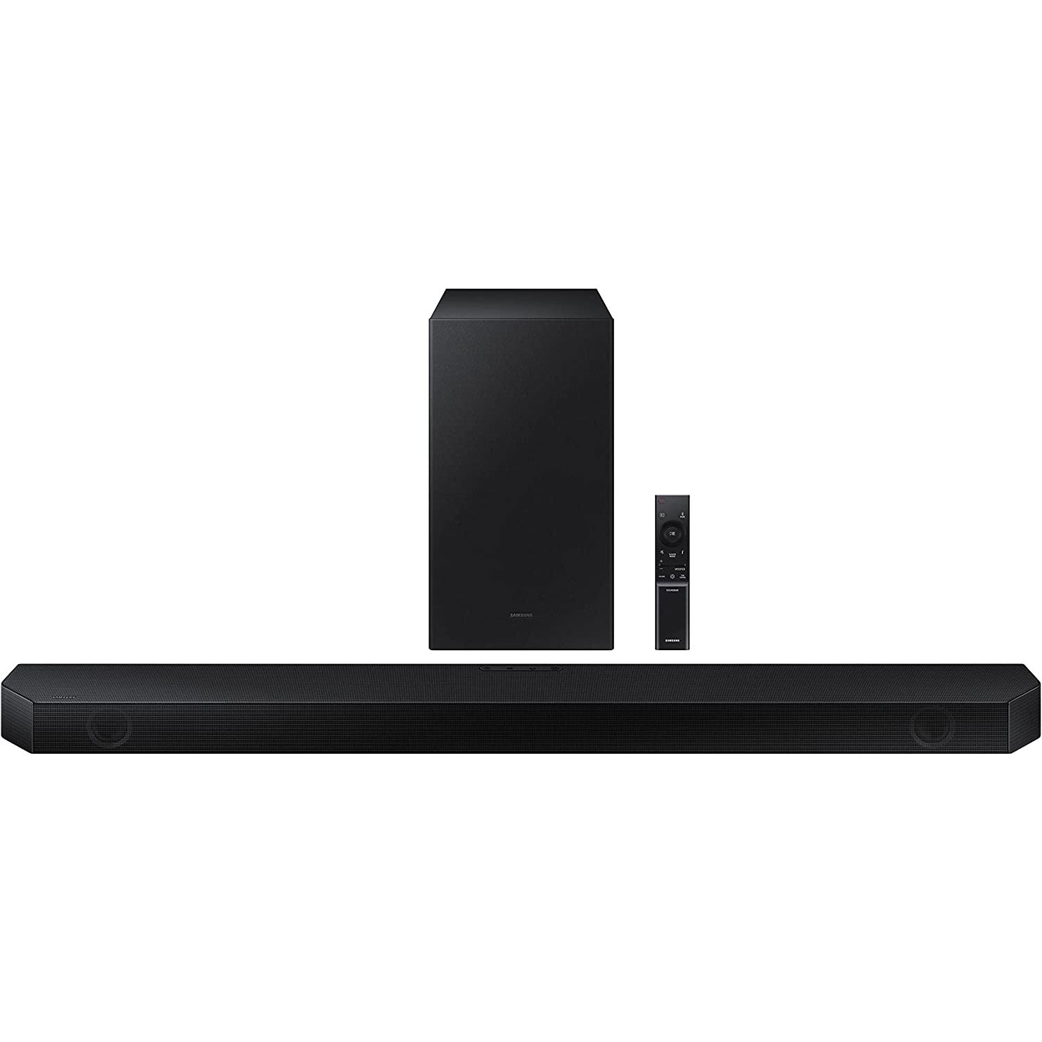 Step up your audio game with the Samsung Q600B soundbar, with realistic 3D audio thanks to Dolby Atmos DTS:X. Enjoy sound projecting all around you, including from above, so you’ll hear helicopters buzzing overhead and rockets lifting off. With Adaptive Sound, play video games and watch sporting events like never before. The optimized audio makes it easy to follow every second of the action. It’s the perfect way to level up your entertainment. Get pulled into what you're watching with panoramic sound that moves with the action on-screen. Control both your Samsung TV and soundbar with the Samsung OneRemote.**** A single HDMI cable connection passes advanced audio like Dolby Atmos to TV connected devices.