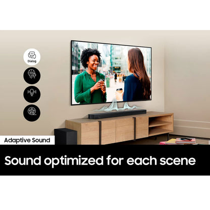 Q-SYMPHONY: Perfectly synchronized, fully immersive audio floods your room all at once, using every speaker in compatible Samsung TV and soundbars.