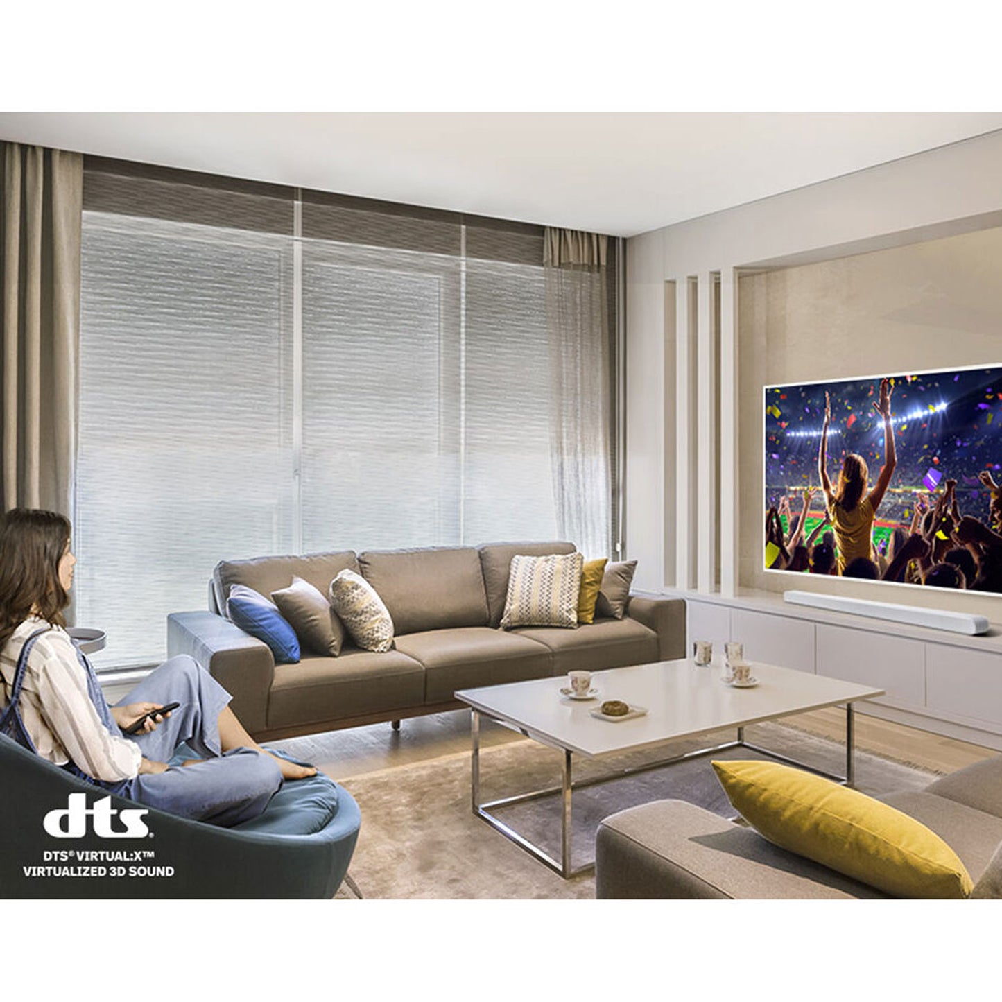 - Q-SYMPHONY: Perfectly synchronized, fully immersive audio floods your room all at once, using every speaker in compatible Samsung TV and soundbars.