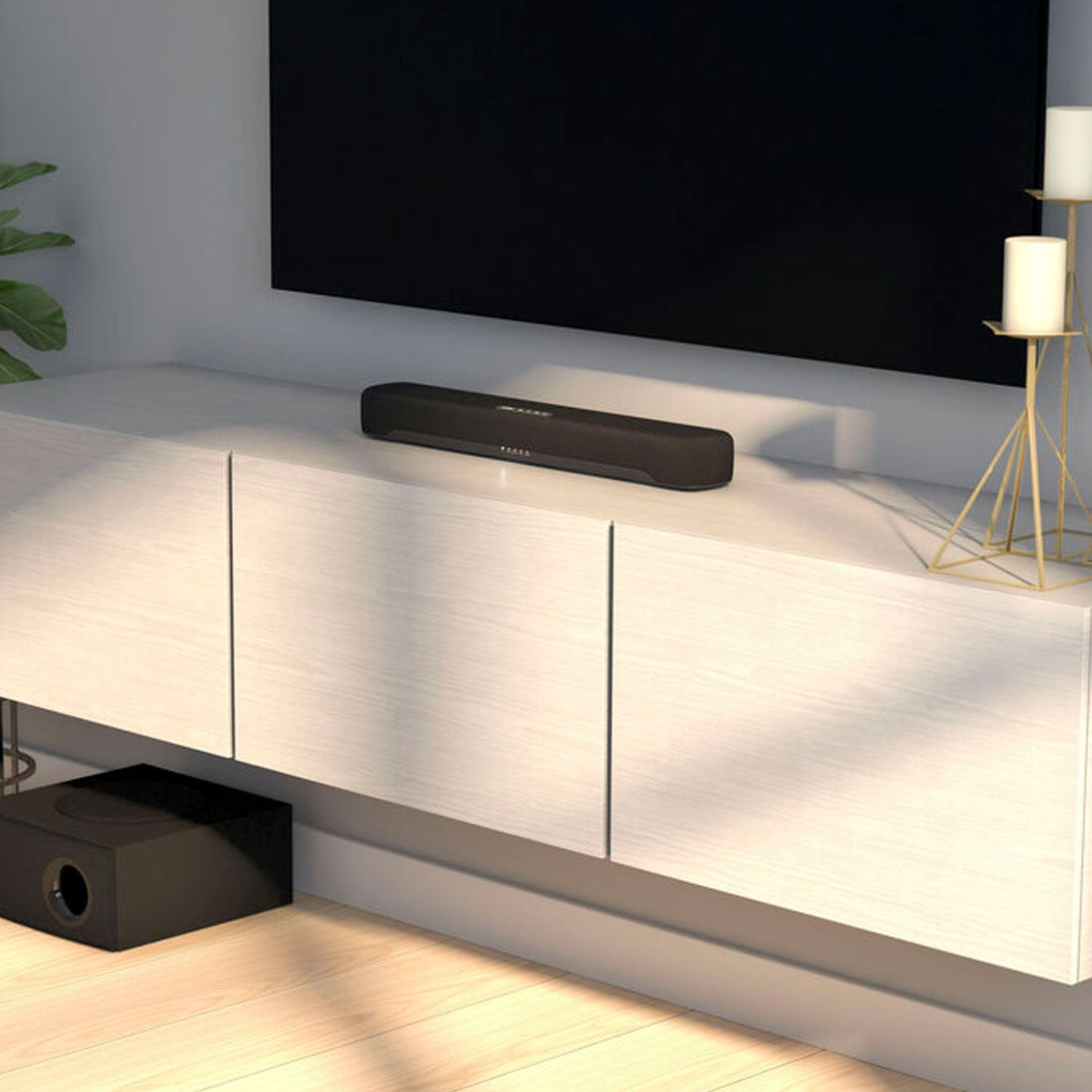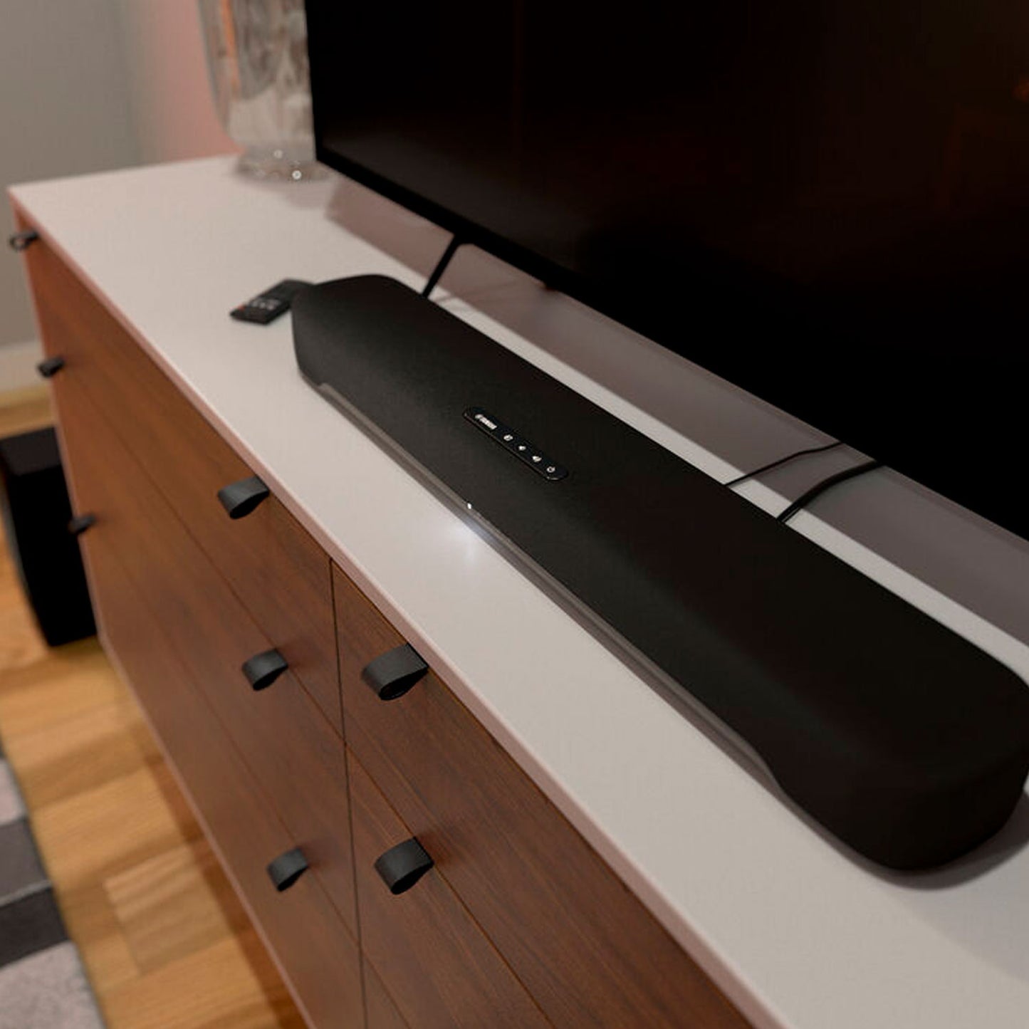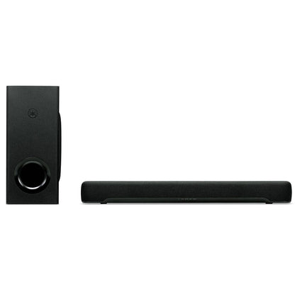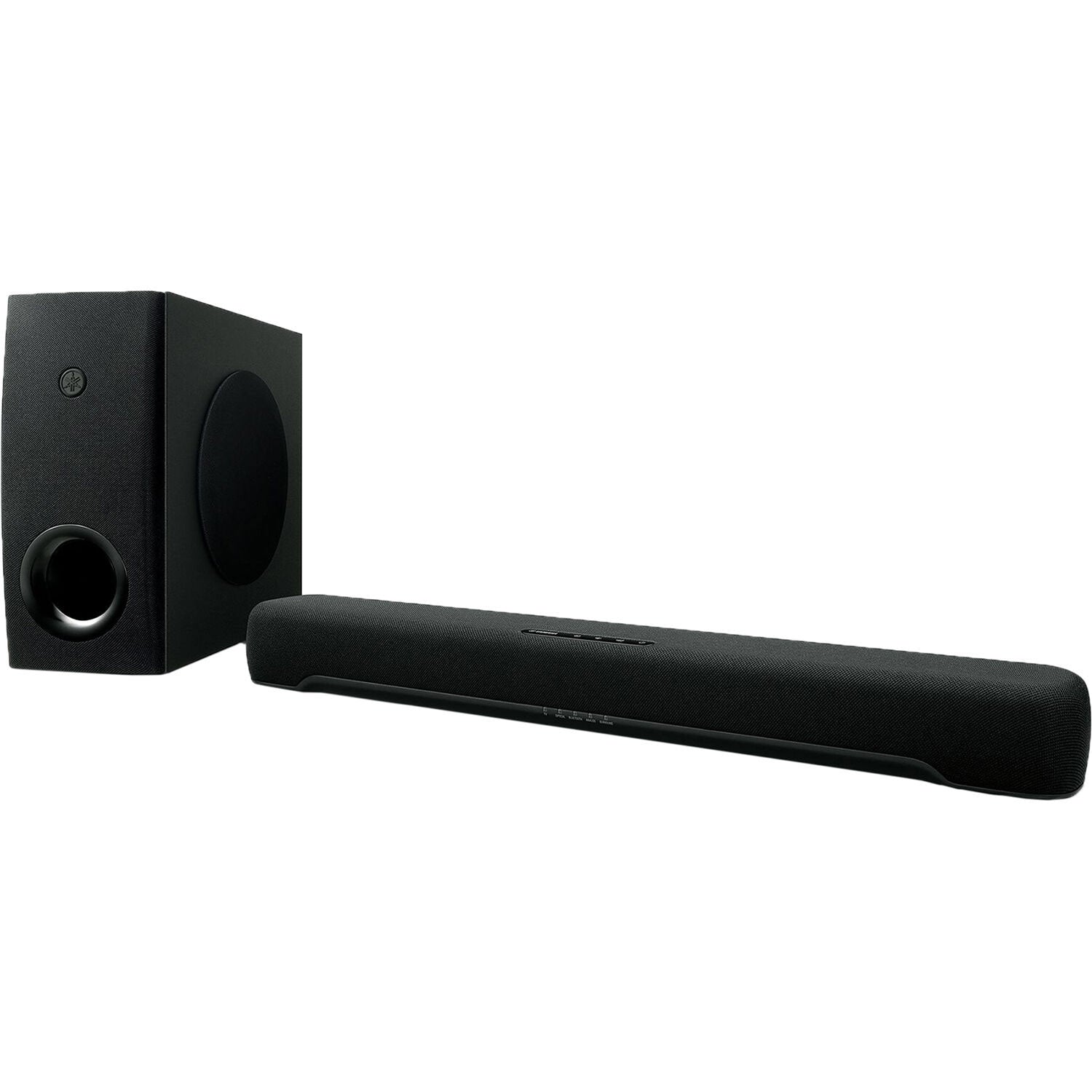 Yamaha 2.1 Ch SR-C30A Compact Sound Bar with Wireless Subwoofer and Bluetooth Good on space and on bass. Packed with virtual 3D surround sound, Clear Voice and Adaptive Low Volume technologies inside a footprint made for versatility. A wireless compact subwoofer wants to be heard but not seen – place it vertically or horizontally. Bluetooth and easy setup options make listening simple. Wall-mount for even more space-saving possibilities.