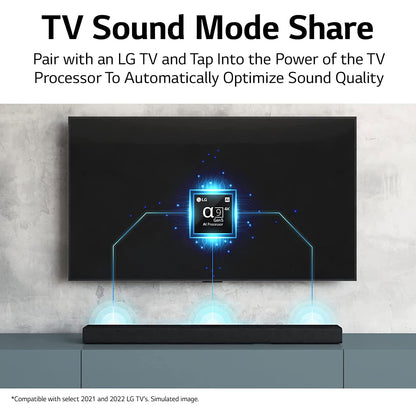 - [Best Match for LG TVs] LG Sound Bars are engineered to seamlessly enhance LG TV performance and are designed to match LG TV. Control the Soundbar with LG TV remote controller and generate high-quality sound from LG TV's sound engine.