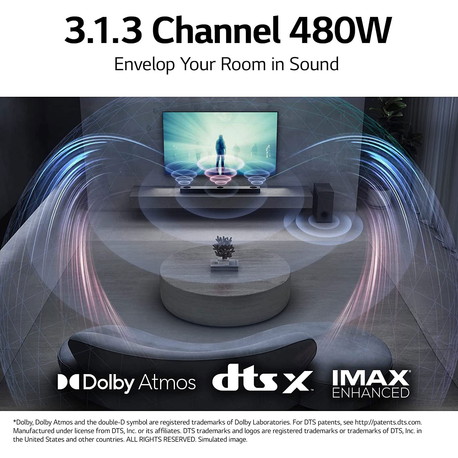 - [Truly Immersive 3.1.3ch Cinema Sound] With the Center Up-firing speaker, voice clarity and surround effect are further improved. A subwoofer is included.