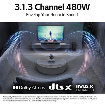 Bring your entertainment alive with 3.1.3 channels including the world's first sound bar with up-firing center channel that lets you hear every piece of dialogue clearly and 480W that delivers immersive sound and bass.