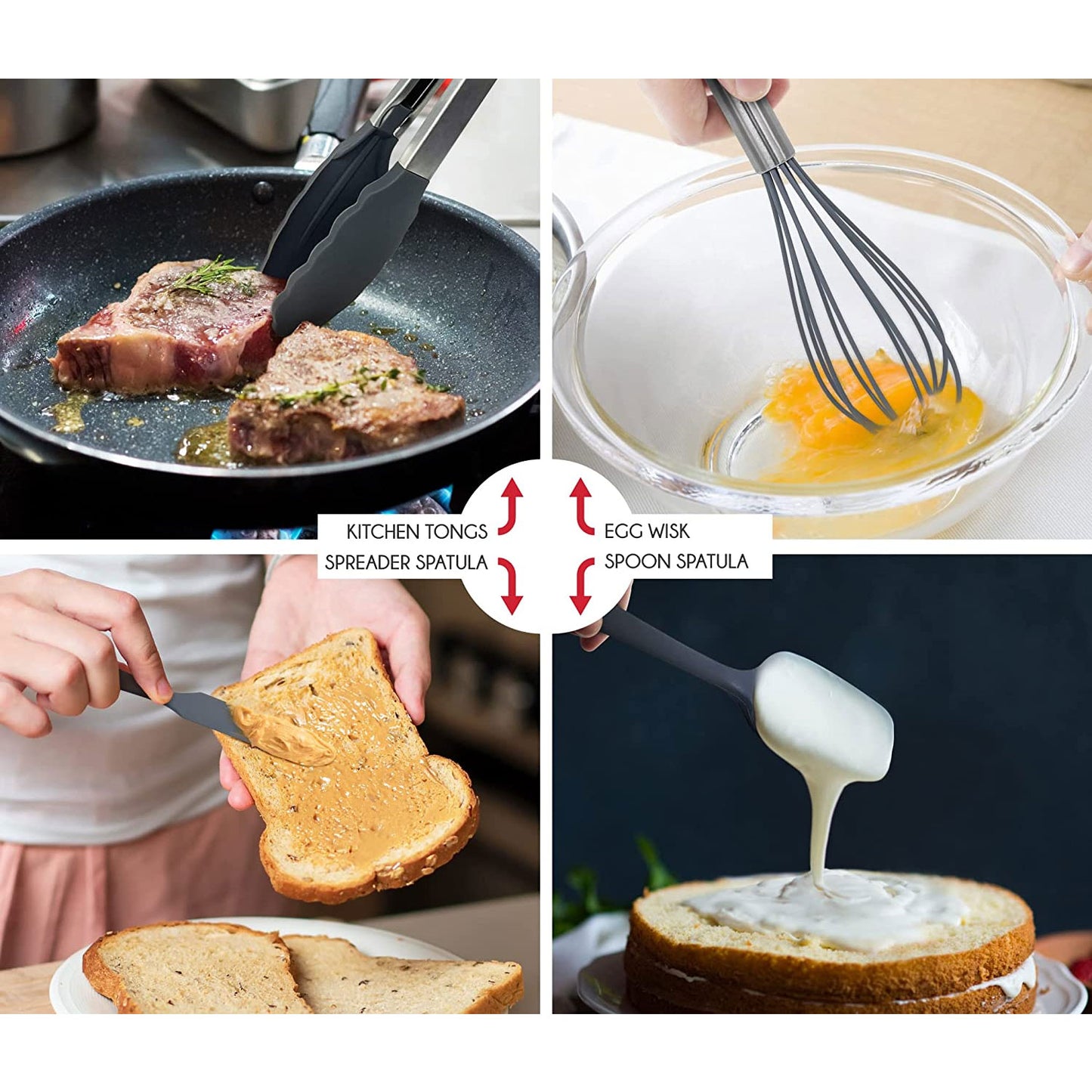 FOOD GRADE MATERIALS: Quality kitchen utensils of FDA certified silicone and 430 stainless steel for non-stick cooking and delightful culinary experiences when prepping delicious and healthy meals.