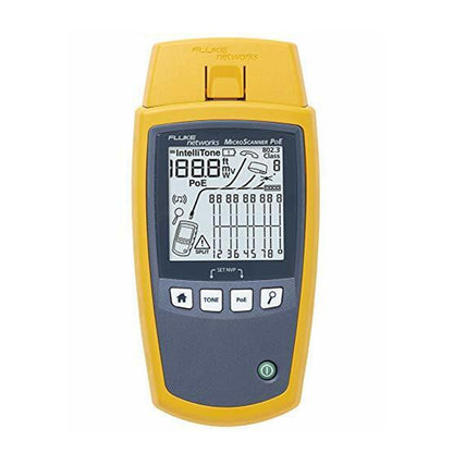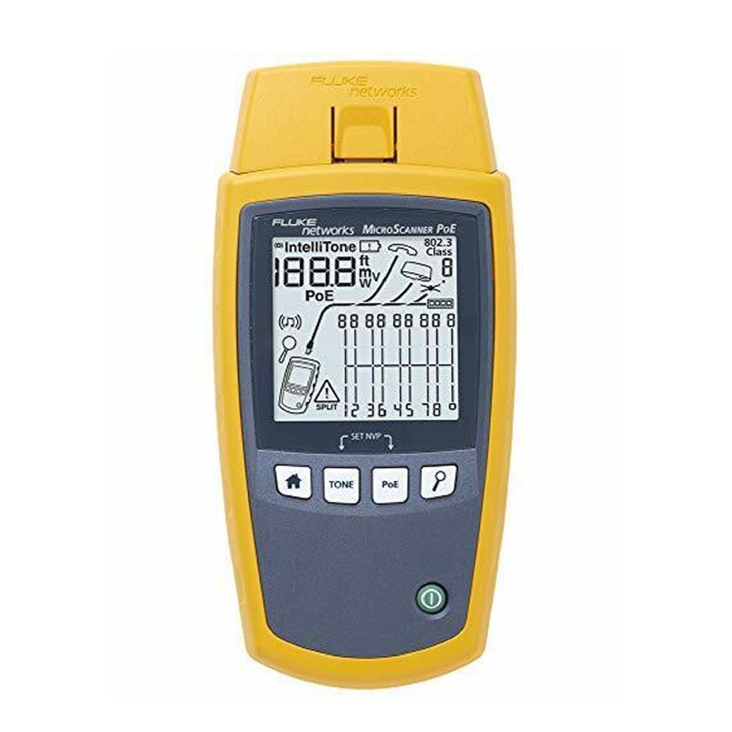 Microscanner PoE cuts through the confusion of your PoE installation by providing swift and simple PoE verification. Thetester detects the available PoE class (0-8) in accordance to the latest PoE standards and displays the voltage from passive PoE sources. Everything cable technicians need to know, including available services (up to 10G Ethernet), cable length, wire map, cable ID, and distance to fault are all shown on the LCD screen. Built-in Intellitone digital and analog toning precisely locates virtually any cable or wire pair -even on active networks. The ergonomic design features sleek rubber over mold to enhance grip and ruggedness.