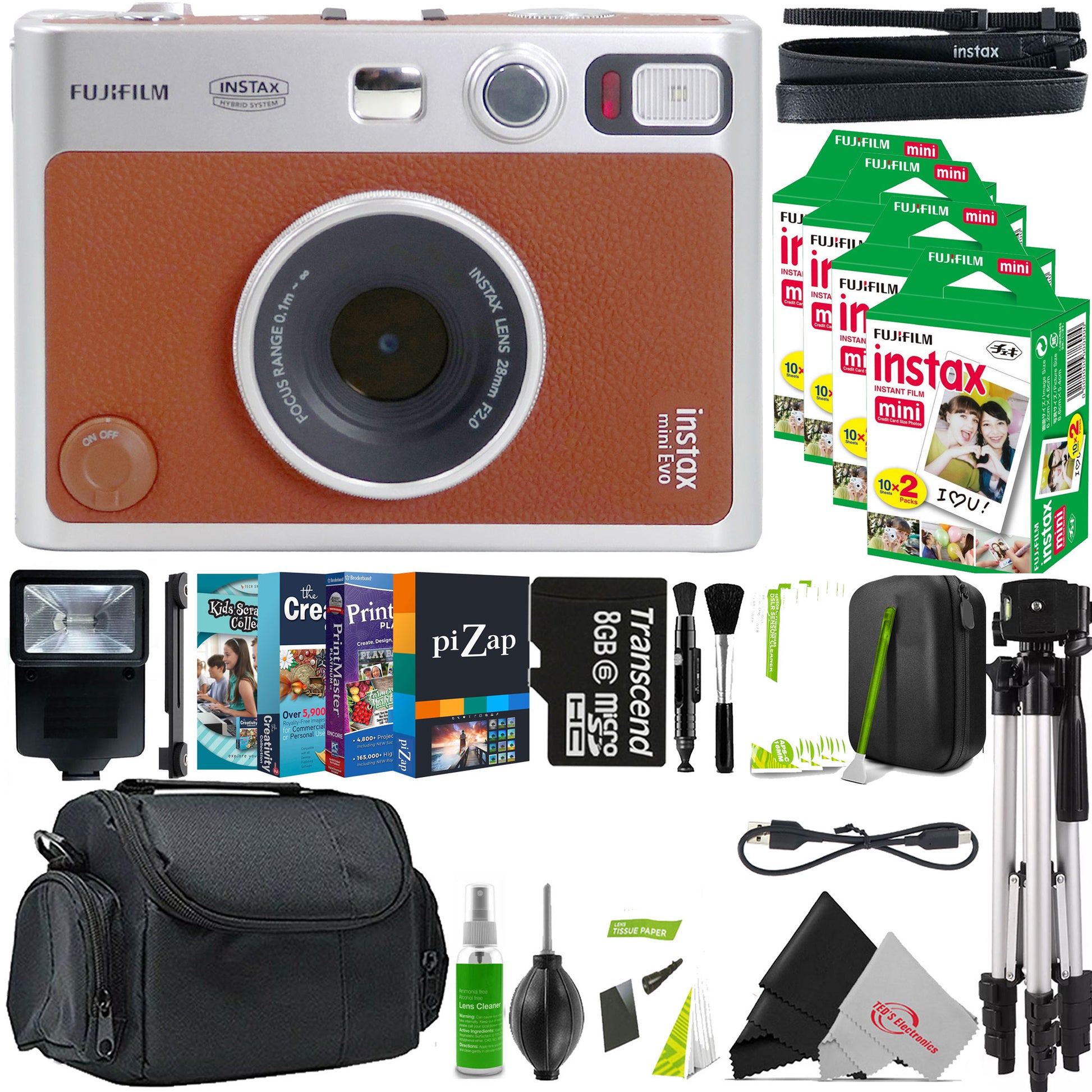 FUJIFILM INSTAX MINI EVO HYBRID INSTANT CAMERA (BROWN) + 4X FUJIFILM 2X10 FILM MINI INSTAX FILM PACK + 8GB MICROSD MEMORY CARD + CARD READER + SLAVE FLASH + KIDS SCRAPBOOKING COLLECTION BUNDLE + CAMERA CASE + TALL TRIPOD + PROFESSIONAL CLEANING KIT