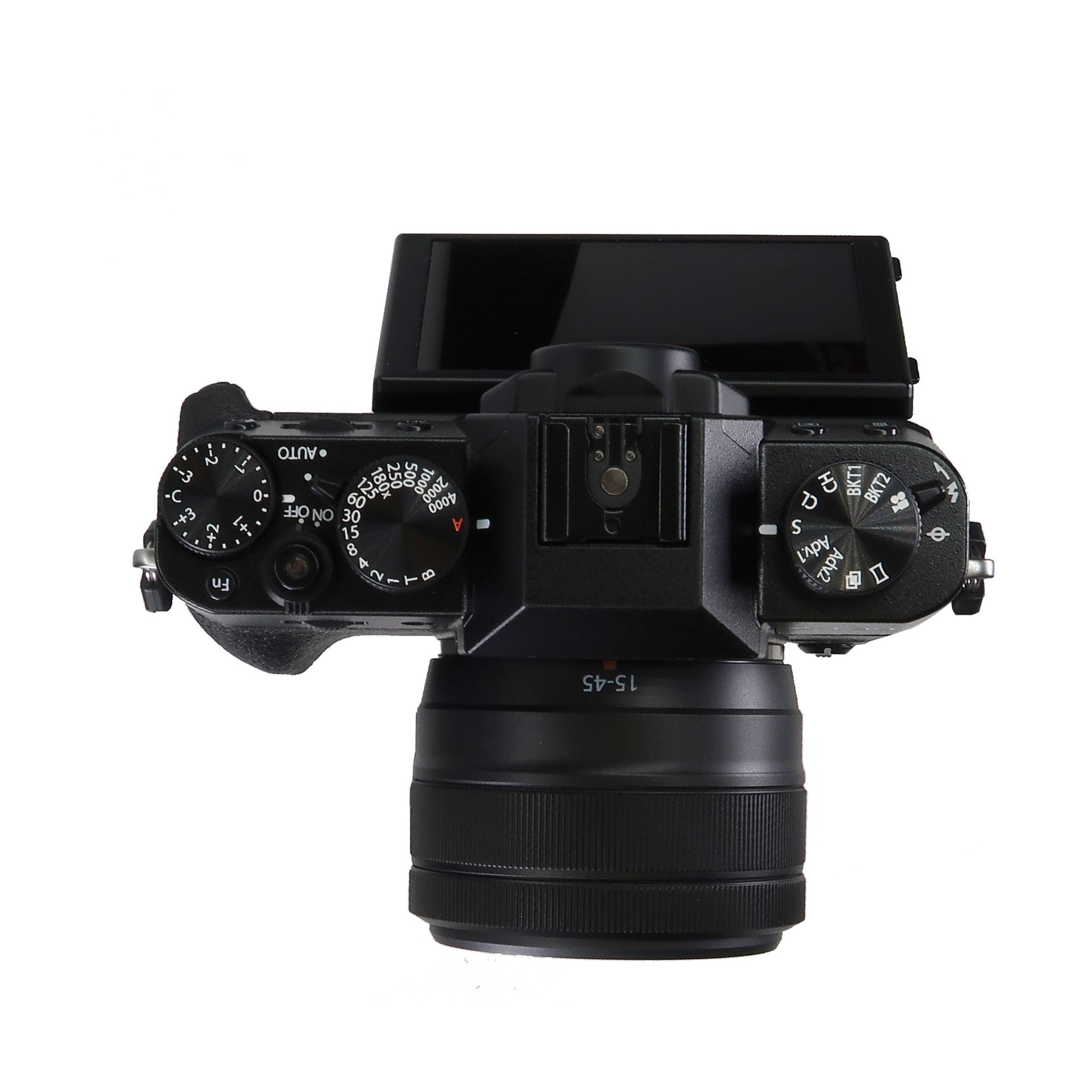 - The top plate incorporates a series of dials and levers for fast, intuitive control over exposure settings, including a shutter speed dial that offers direct shutter speed adjustment, a mode dial, and an exposure compensation dial to choose +/- 3 EV in 1/3 steps, while a command dial position expands the range to +/- 5 EV for further control.