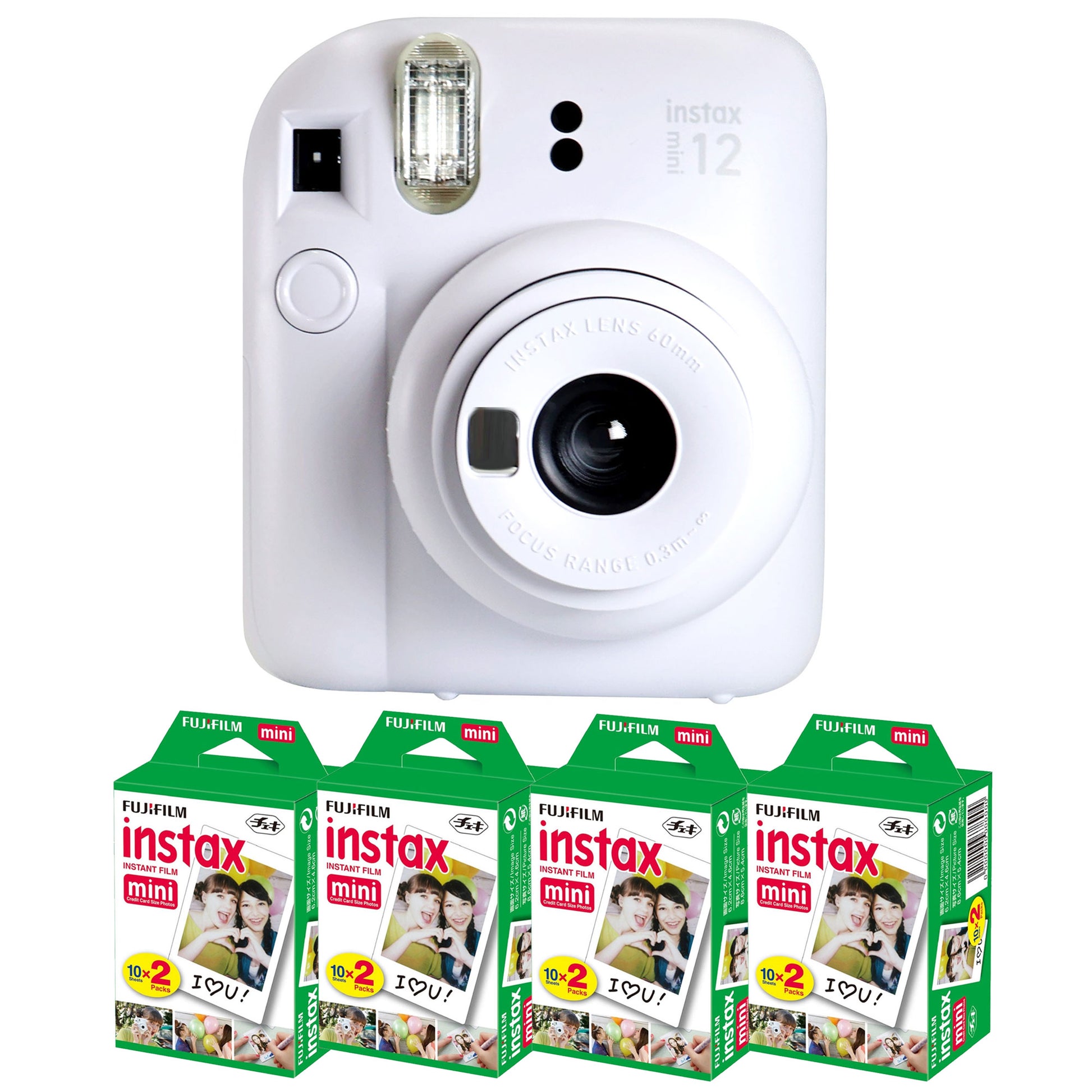 FUJIFILM INSTAX MINI 12 INSTANT FILM CAMERA (CLAY WHITE) + 4X FUJIFILM 2X10 FILM MINI INSTAX FILM PACK