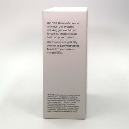 Implement energy-saving temperature control in your home with the snow Google Nest Thermostat. Compatible with most HVAC systems, this unit features a 2.4" IPS LCD screen, dual-band Wi-Fi and Bluetooth Low Energy connectivity, temperature adjustments for seasonal changes, and smart energy monitoring. Remote management is possible thanks to the Google Home app. Compatibility with Amazon Alexa and Google Assistant enables seamless voice control.