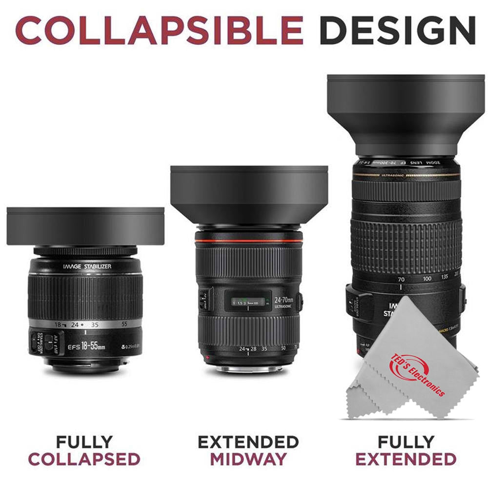 Helps to prevent unwanted stray light from entering the lens by shading the front element of the lens. Its collapsible, rubber design enables it to remain on your lens at all times without requiring much additional space and it also serves to protect the lens from accidental impact.