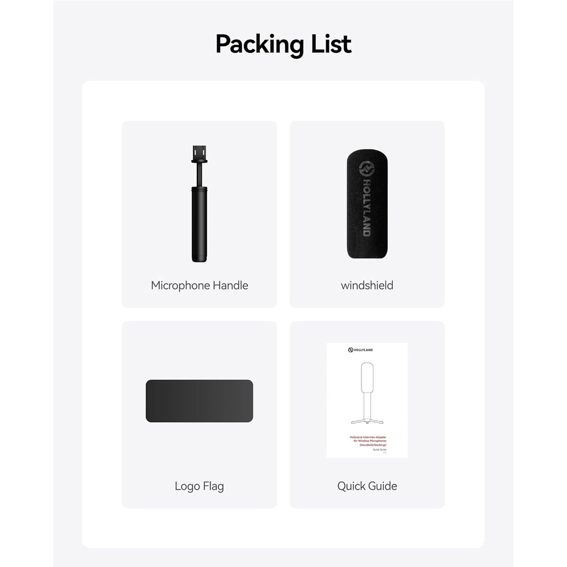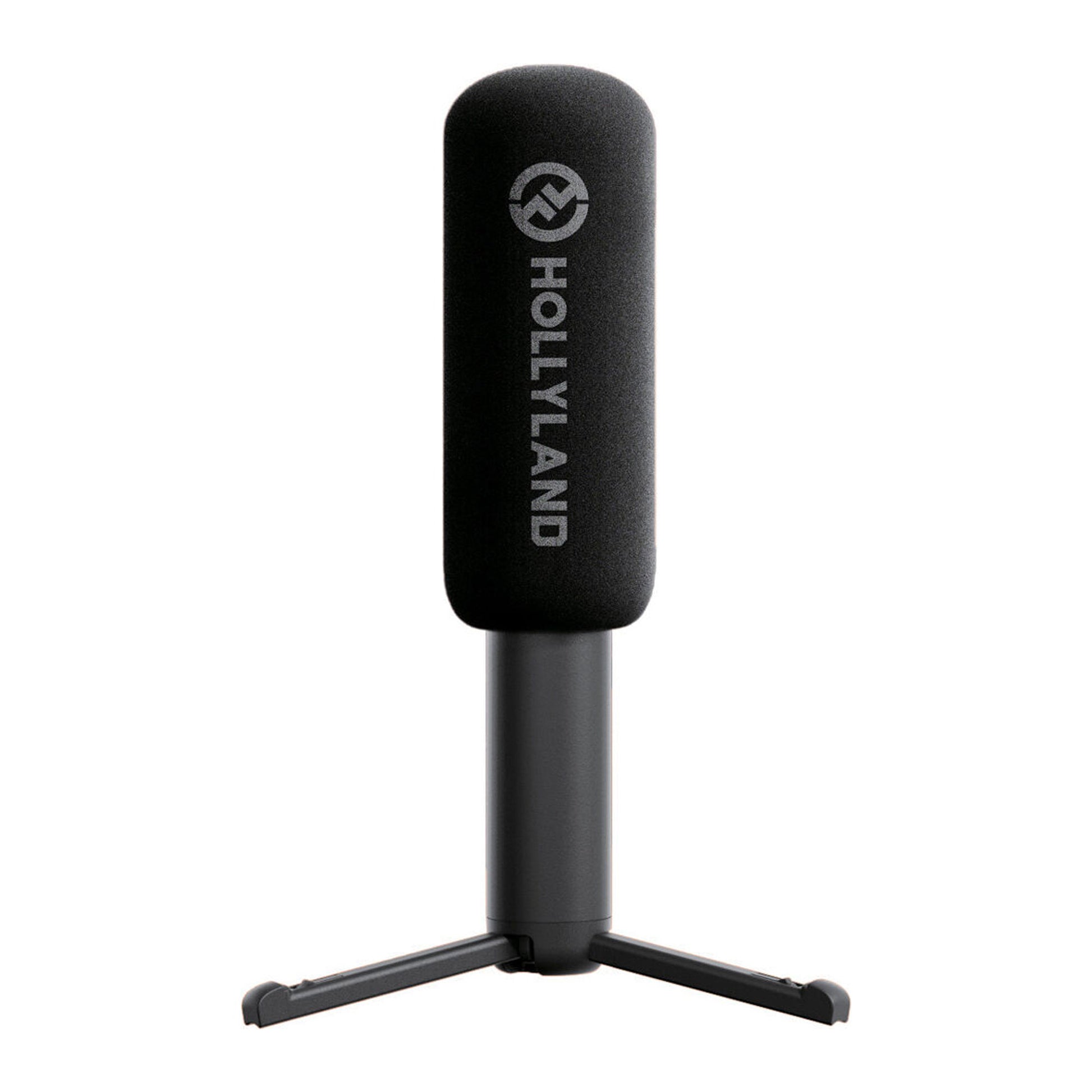 Turn your wireless microphone transmitter into a handheld or desktop mic using the Interview Adapter from Hollyland. The adapter features a handle component with a mounting slot that accepts a wide variety of transmitters, both LARK series and third-party. Built-in retractable legs on the handle allow you to place the adapter down on a flat surface. A foam windscreen helps mitigate vocal plosives and wind noise.