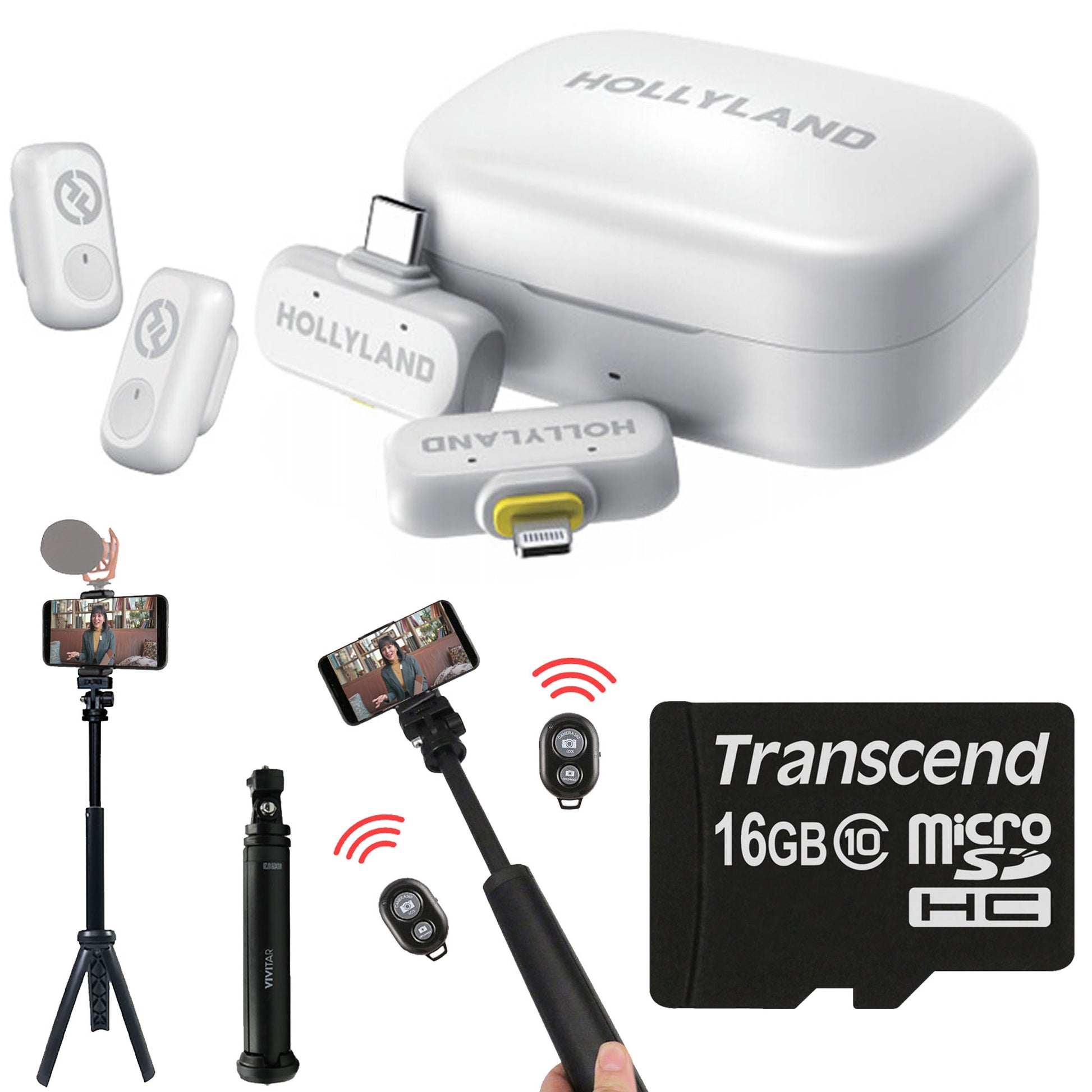 - Hollyland LARK A1 Combo 2-Person Wireless Microphone System with USB-C and Lightning Connectors for Mobile Devices (Ivory White, 2.4 GHz)