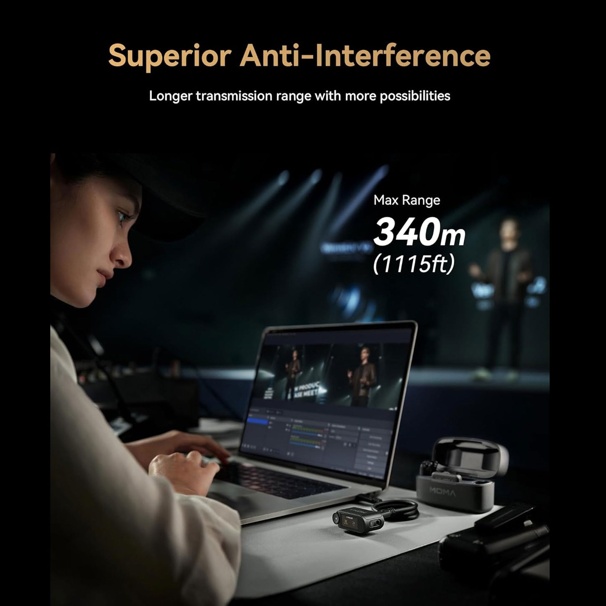 - 340m Long-Range Stability The Hollyland LARK MAX 2 wireless mic delivers crystal-clear audio for professional video recording, incredibly stable audio with LOS range of up to 340m (1115ft). Utilizes advanced 2.4 GHz frequency hopping technology to deliver pristine sound quality and 25ms ultra-low latency (*TX to RX).