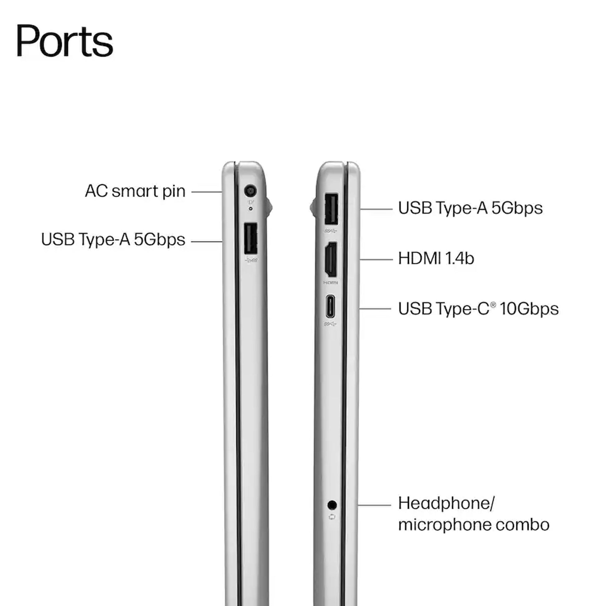 - Ports — 1 USB Type-C (10Gbps, USB Power Delivery 3.1, DisplayPort 1.4, HP Sleep and Charge), 2 USB Type-A (5Gbps), 1 headphone/microphone combo, 1 AC smart pin, 1 HDMI 1.4b