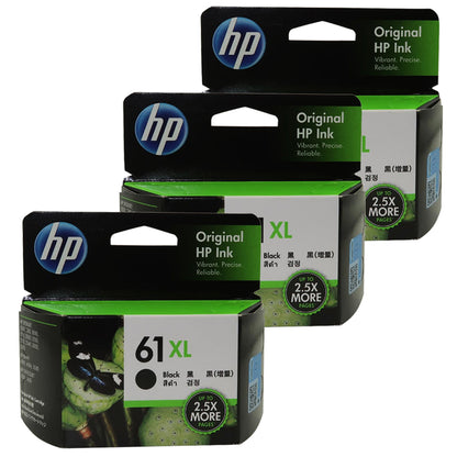 3x HP 61XL Black Ink Cartridge CH563WA (480 Pages)