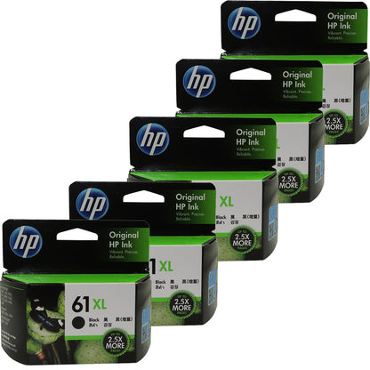 5x HP 61XL Black Ink Cartridge CH563WA (480 Pages)
