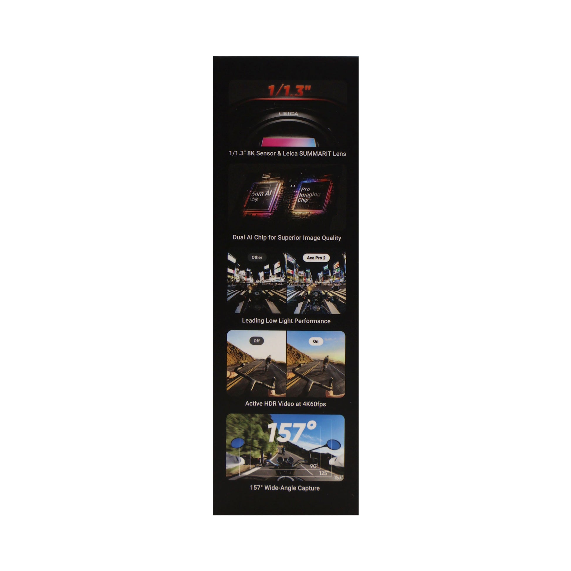 - 8K Ultra HD Video – Capture your adventures in breathtaking detail with 8K30fps resolution for cinematic clarity