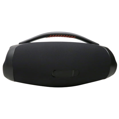 Featuring a modern take on a classic design, the black Boombox 3 Portable Bluetooth Speaker from JBL lets you easily take your music anywhere. Carry it with its sturdy metal handle and orange silicone grips to the backyard, a friend's house, or the beach. Thanks to its twin side-caps and water/dustproof fabric, the Boombox 3 can handle the water and sand. Your streaming audio is made to sound clear and dynamic with booming bass, thanks to JBL's Original Pro Sound and 3-way 136W (180W via AC) speaker system. Additional features like dual device pairing, USB charging, and more are sure to make you and the Boombox 3 the life of the party.