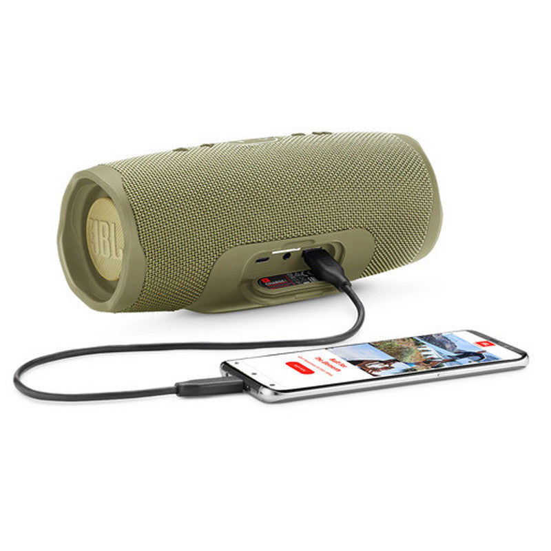 JBL combines wireless audio streaming and portability with the squad Charge 4 Portable Bluetooth Speaker. This speaker features a proprietary developed driver and two JBL bass radiators that intensify sound with strong deep bass. Its high-capacity 7800mAh rechargeable lithium-ion battery provides up to 20 hours of playtime. This speaker carries a convenient USB Type-C charge out to quickly power your mobile devices, such as your smartphone or tablet. The Charge 4 features a rugged design and IPX7 waterproof rated exterior, which adds protection in any environment. Together with JBL Connect+, this speaker can link with more than 100 JBL Connect+ enabled speakers together to amplify your listening experience.