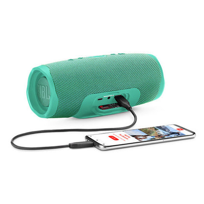 JBL combines wireless audio streaming and portability with the squad Charge 4 Portable Bluetooth Speaker. This speaker features a proprietary developed driver and two JBL bass radiators that intensify sound with strong deep bass. Its high-capacity 7800mAh rechargeable lithium-ion battery provides up to 20 hours of playtime. This speaker carries a convenient USB Type-C charge out to quickly power your mobile devices, such as your smartphone or tablet. The Charge 4 features a rugged design and IPX7 waterproof rated exterior, which adds protection in any environment. Together with JBL Connect+, this speaker can link with more than 100 JBL Connect+ enabled speakers together to amplify your listening experience.